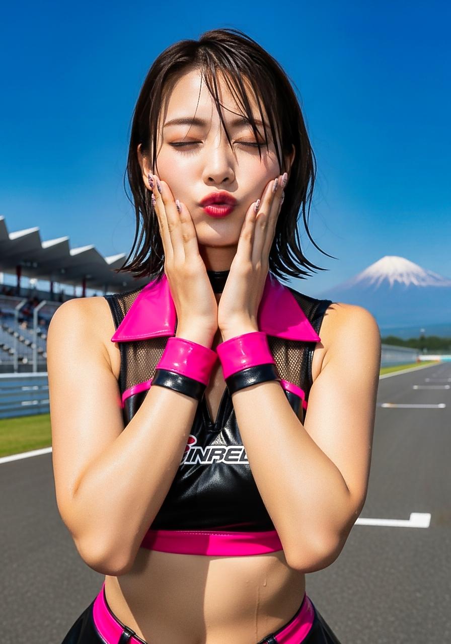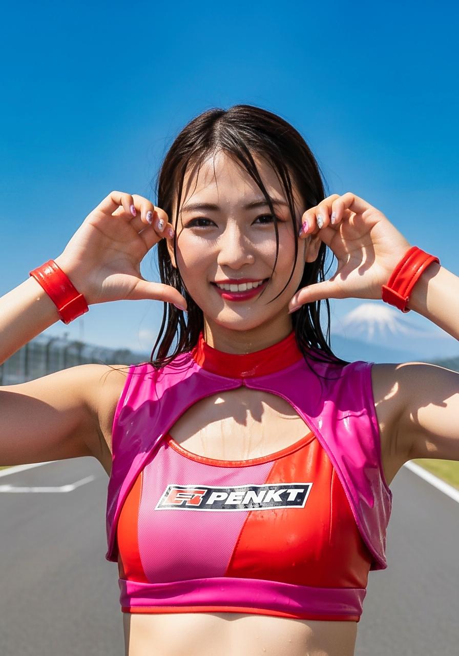 炎天下の中、汗だくで頑張るレースクイーンたちです。