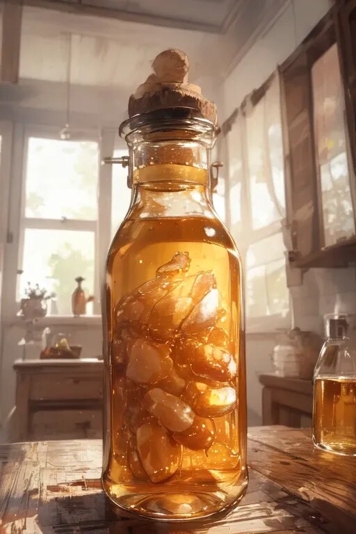 瓶に入ったはちみつ🍯のAIイラストです❗