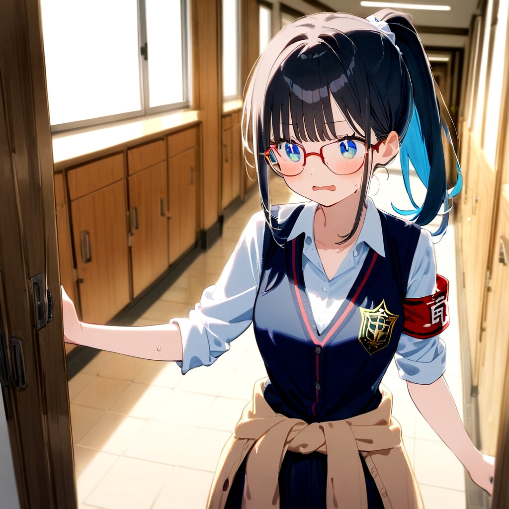 腰にカーディガンを巻いて校内を見廻りする生徒会長