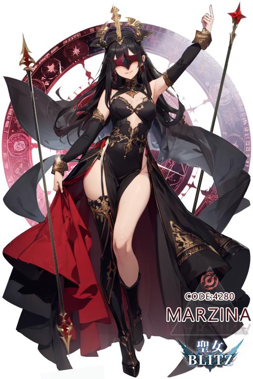 真紅の宝石シュゾナイトを贅沢にあしらった杖を二本使用し、法力を爆発的に増幅させている。