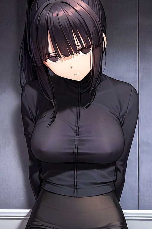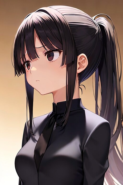 女の子は黒髪ポニーの黒瞳っ娘(お目々奇麗・「みであむお胸」)