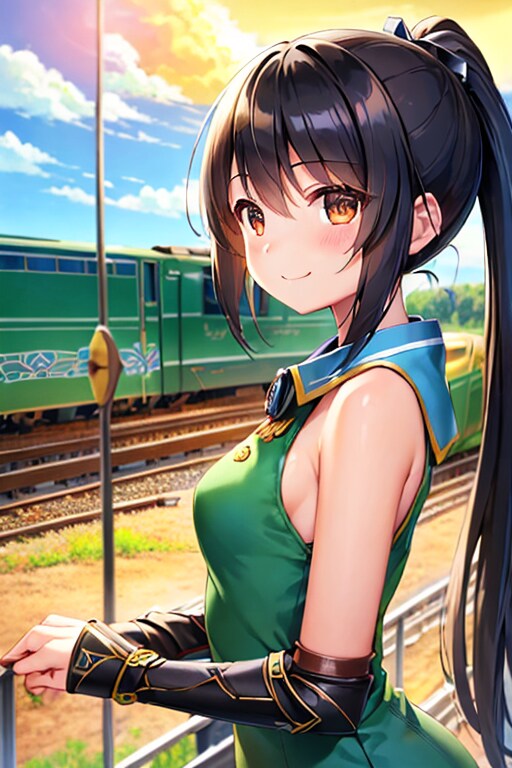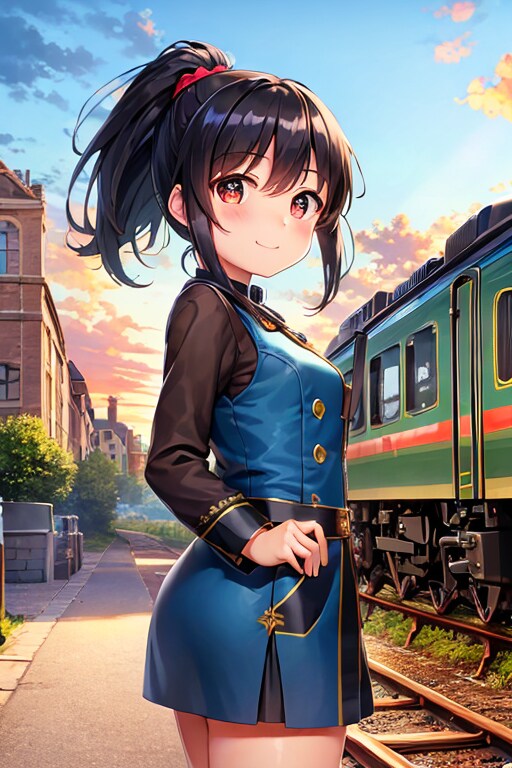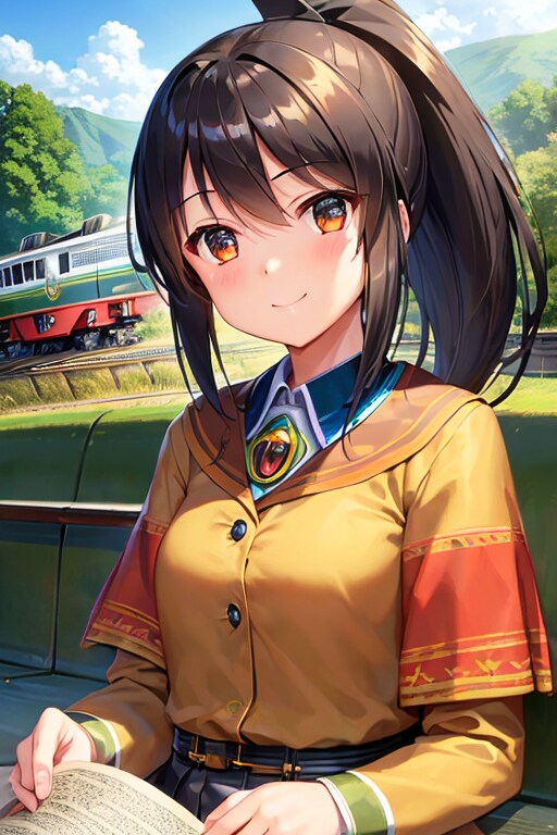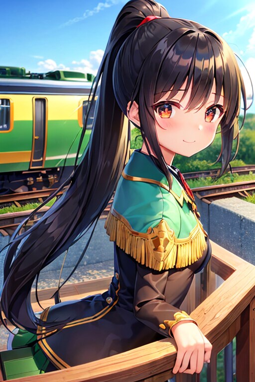 女の子はいつもの黒髪ポニーの茶瞳っ娘(お目々奇麗Ver)