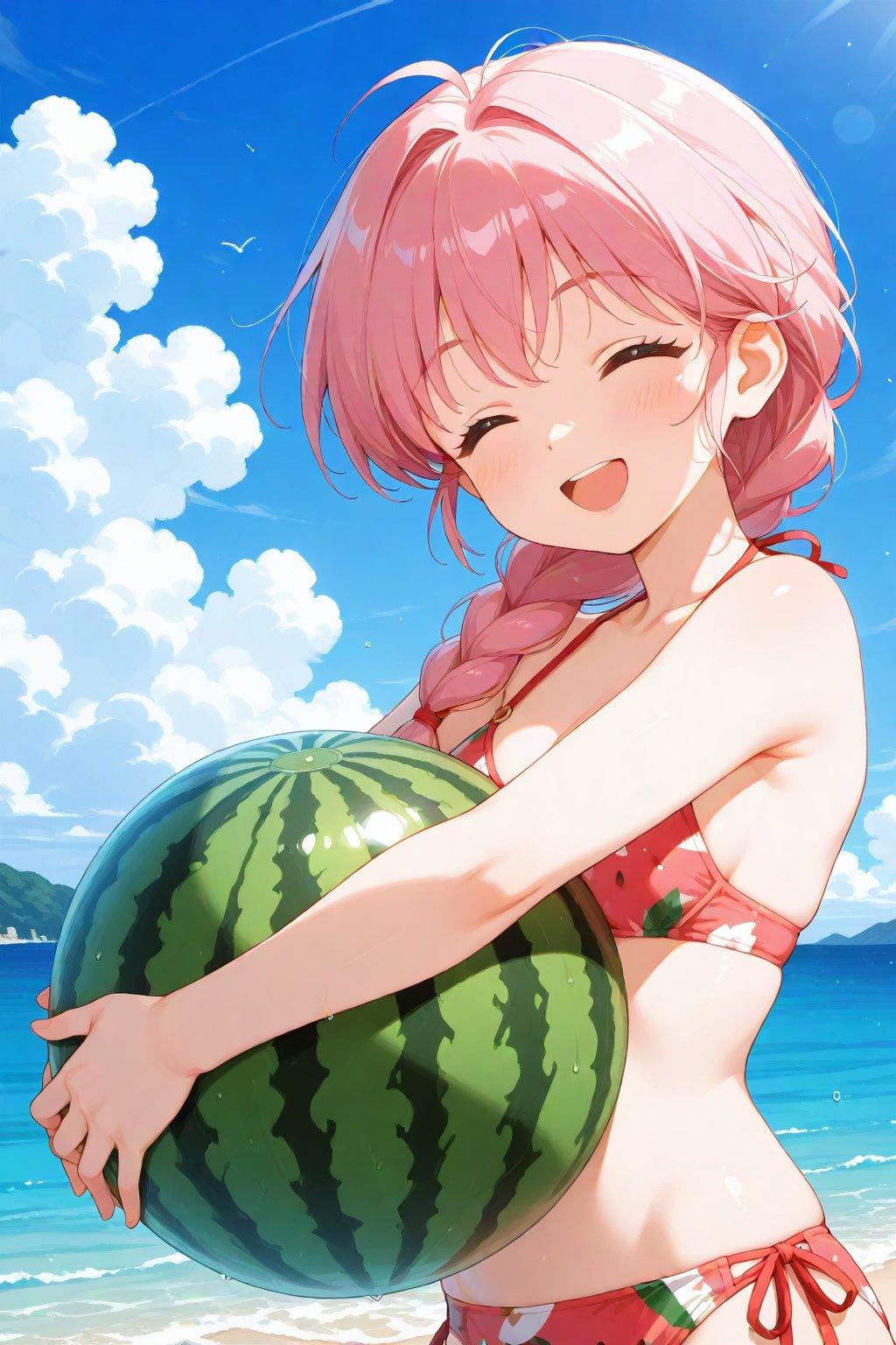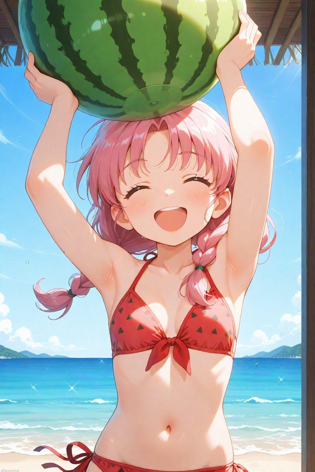 🍉スイカビキニの桃色おさげさん(*´ω`*)