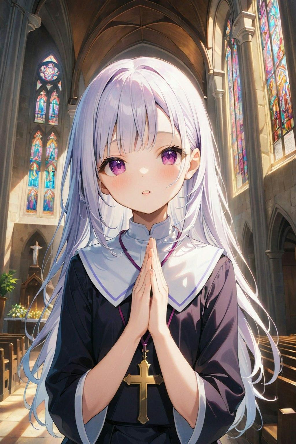② 銀髪シスター(神は見ています、その頑張りなら最高レアも出るでしょう)_20240306 (25いいね)