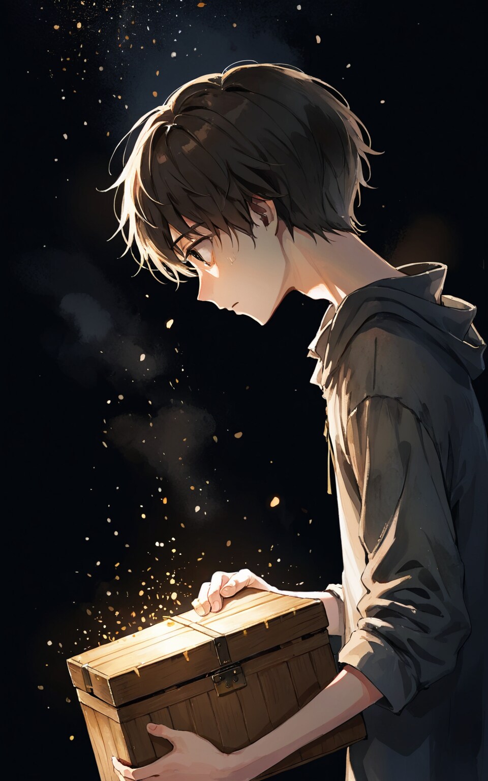 少年の表情は、悲しさ、貧しさ、絶望などの災いで満ちている