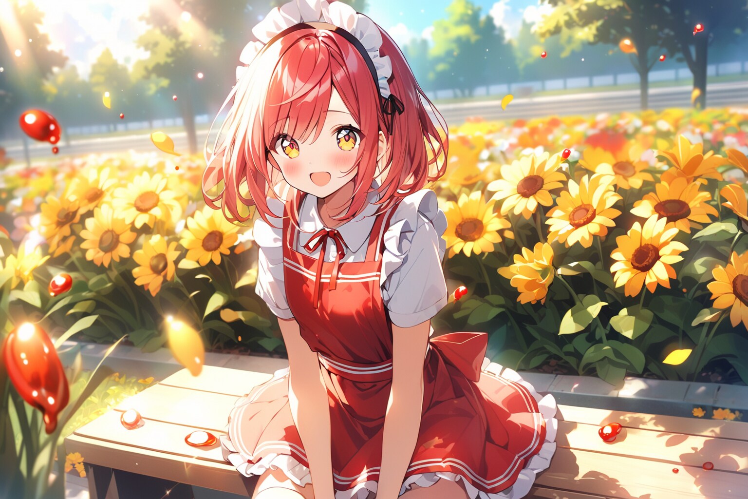 赤髪メイド(少し、こちらで休憩しましょう。買ったものもここで食べましょう)_20240920