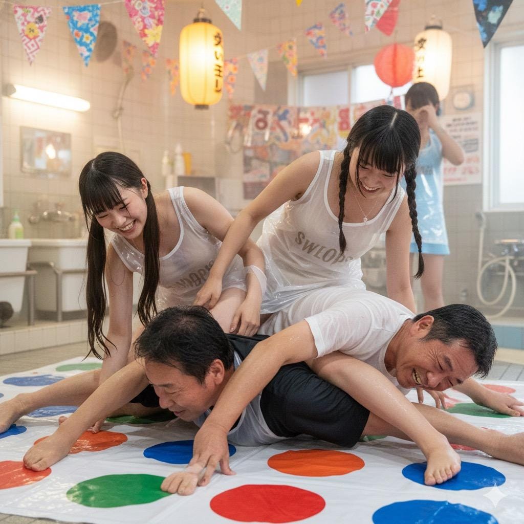 ミルク風呂で射精する巨根ふたなりちゃんたち