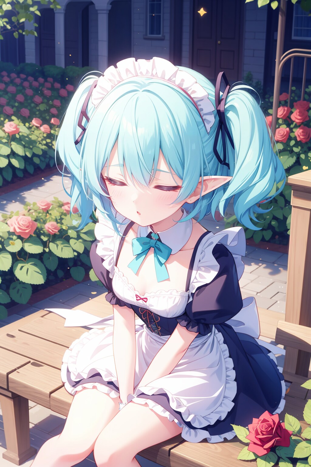 お屋敷の専属メイドで庭園のバラのお世話が主な日課のエルフちゃんです。