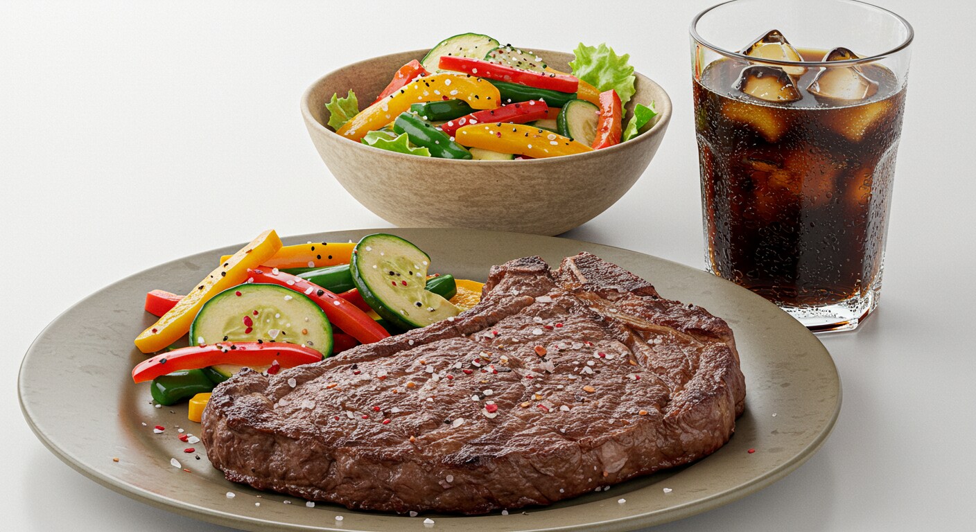 摩訶不思議食堂のステーキとサラダクレイジーセットがけ