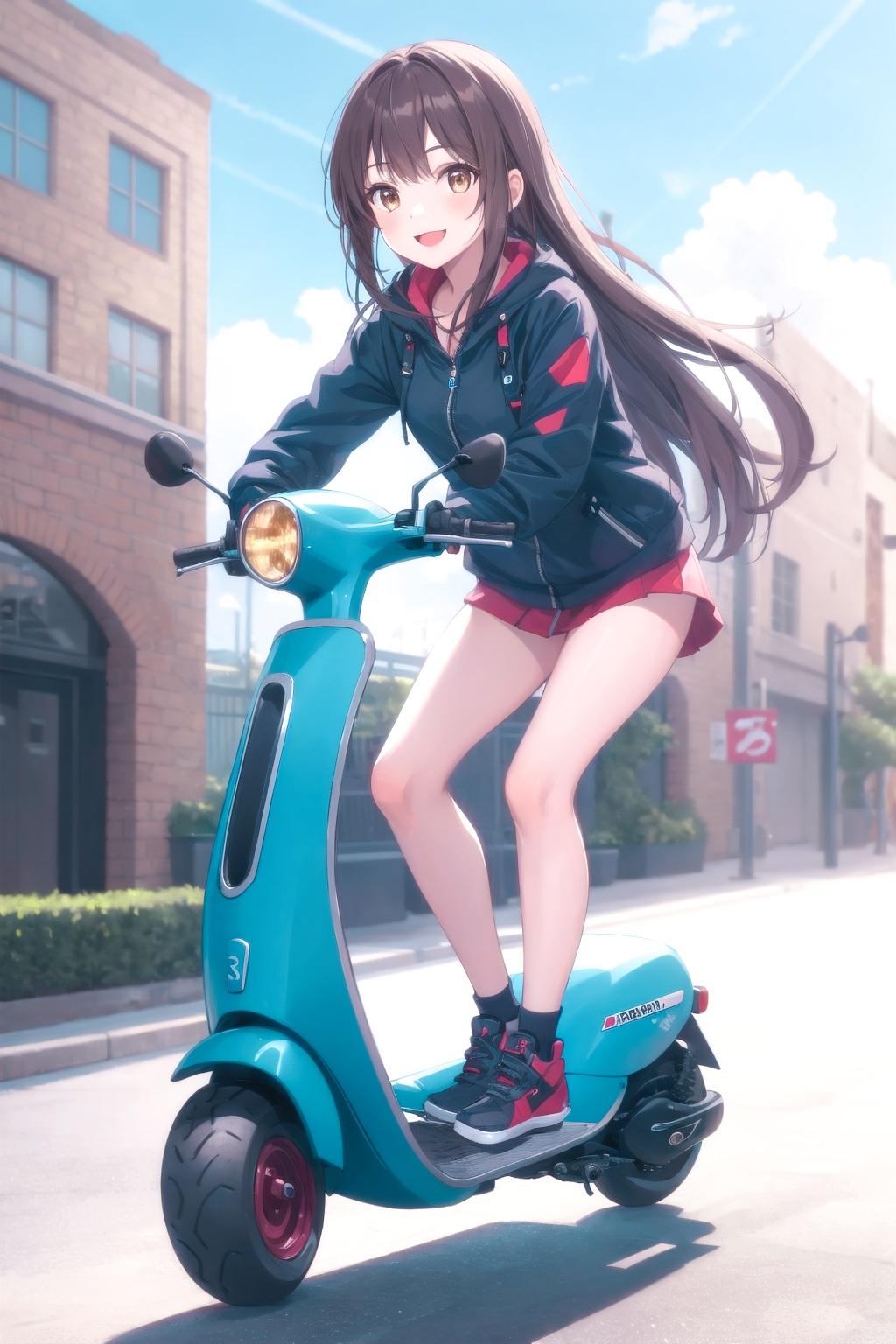 スクーターでも電動キックボードでもない乗り物に乗る女の子