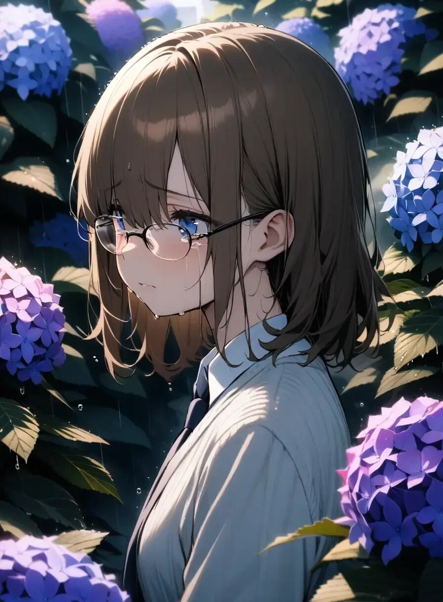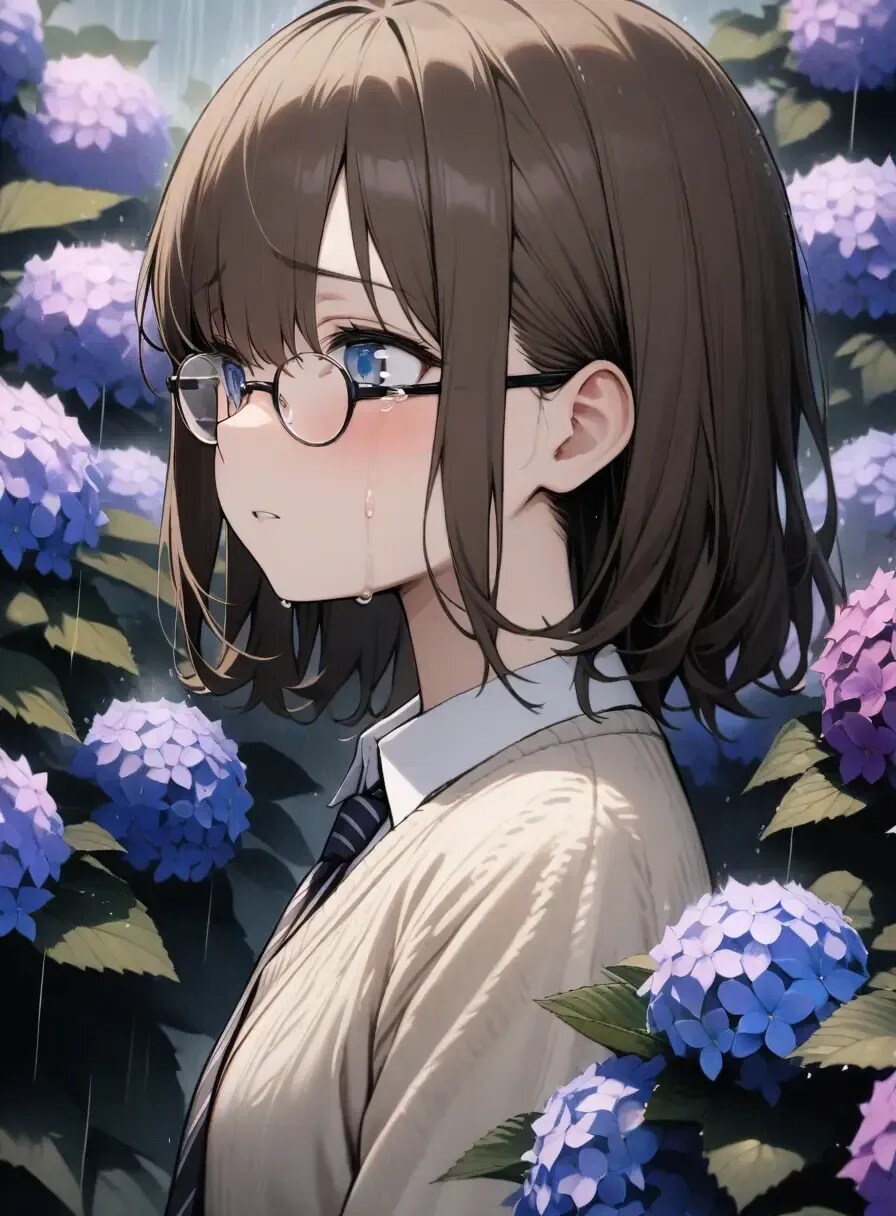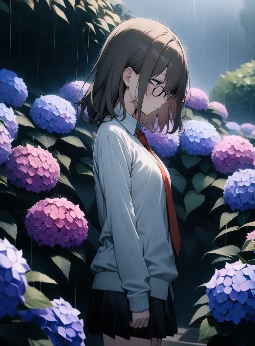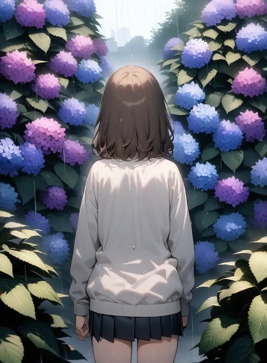 逃げるように裏庭のあじさい園のほうへ向かう彼女