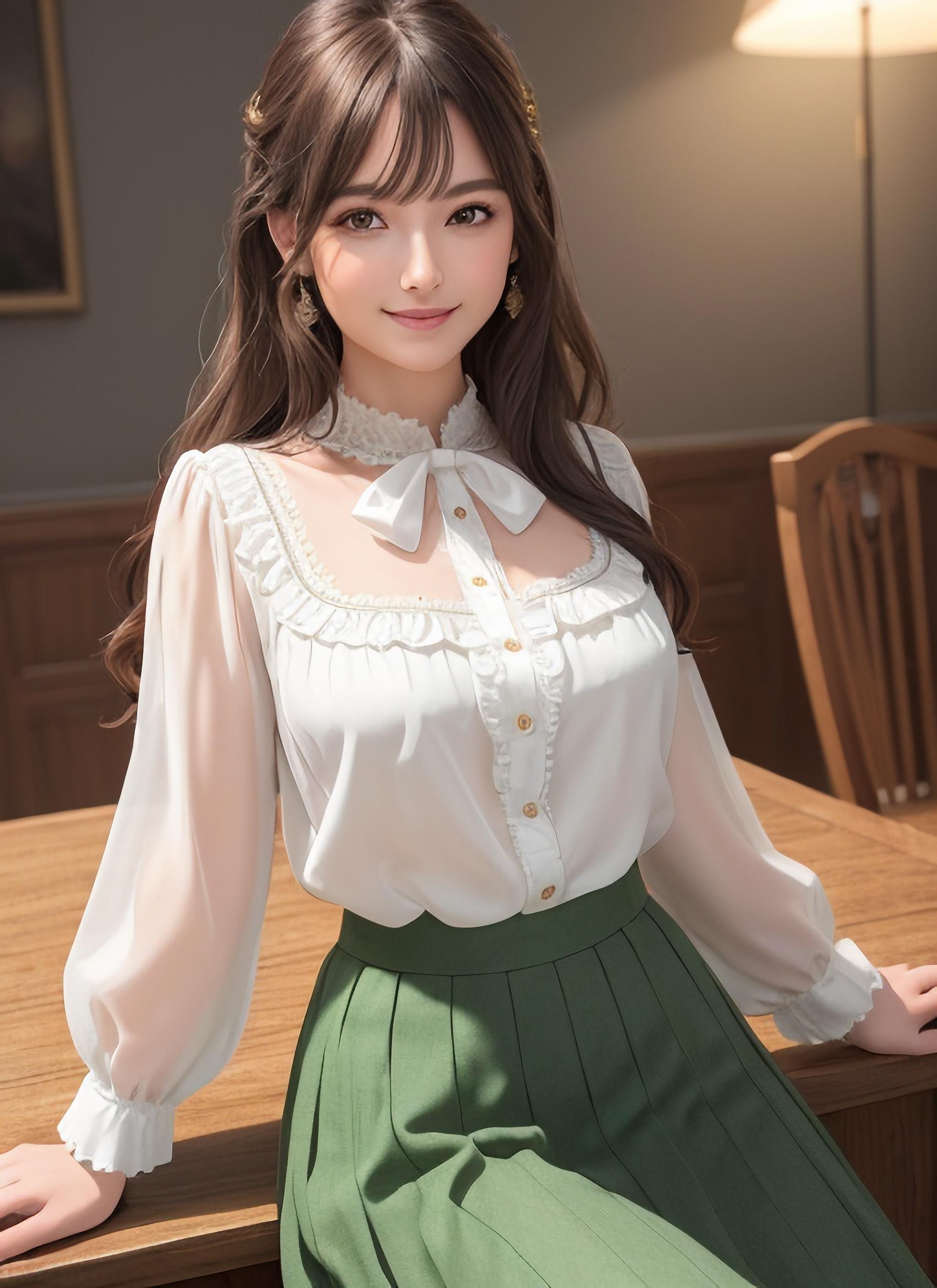 近年緑系が流行りの様なので、第一弾は緑スカートです。