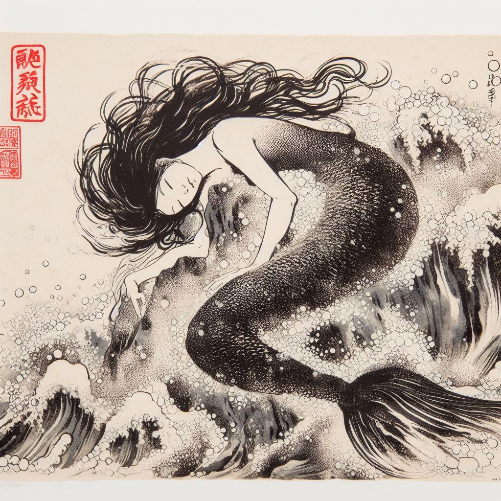 水墨画の江戸時代の日本人 人魚姫っぽい画像などが生成される結果となりました。求めるような魚拓ではないですが面白い画像生成されたので乗せることにしました。