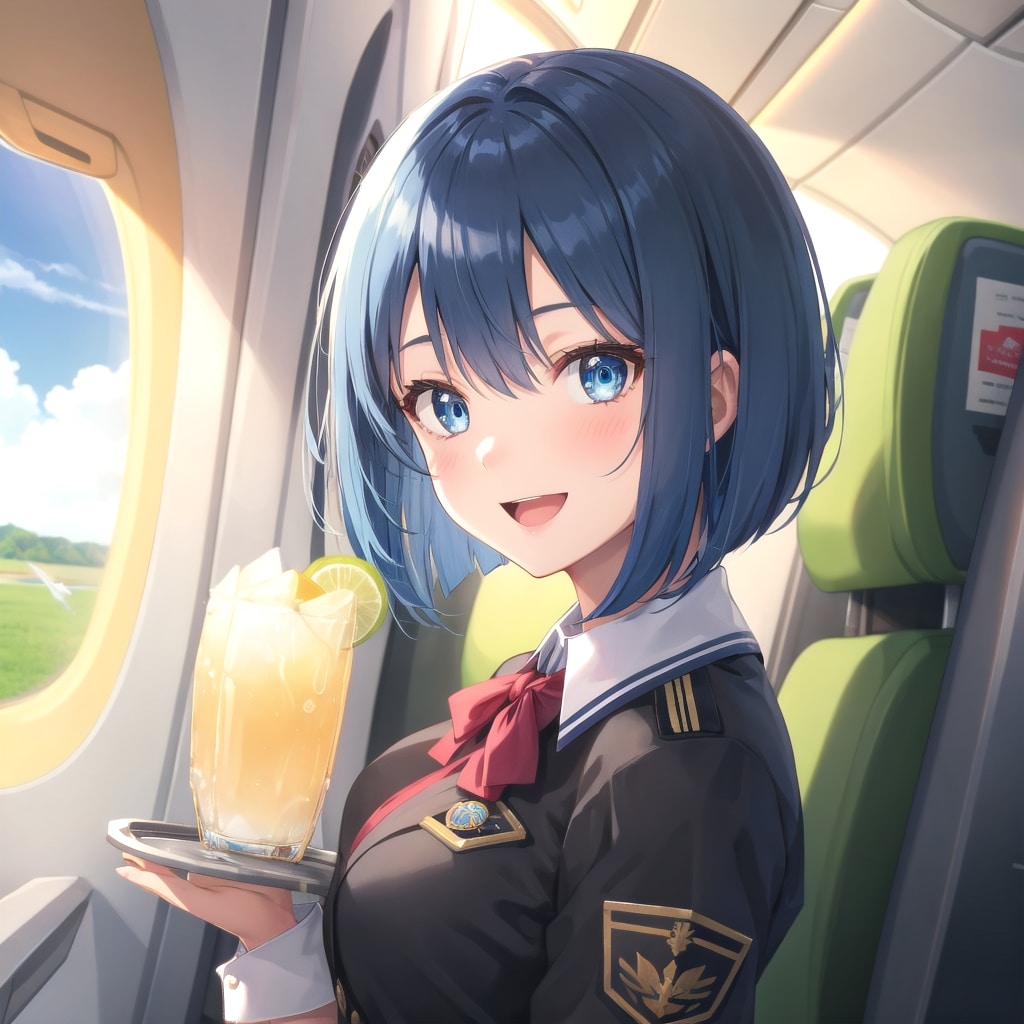 青髪ボブ子ちゃんが、学生モデルとして「CA(キャビンアテンダント)」の衣装を着て雑誌の撮影に臨みました。