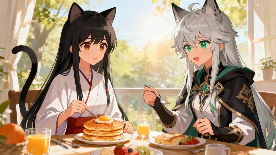 2-3枚目、朝食として食べるさくらちゃんとステラちゃん