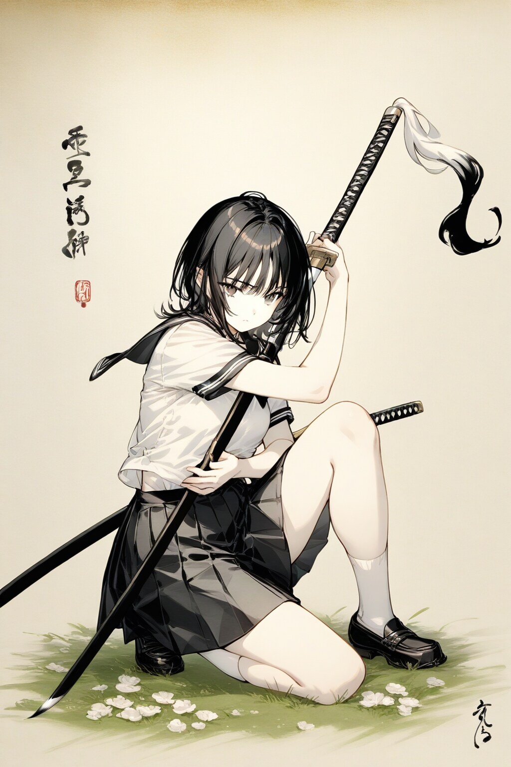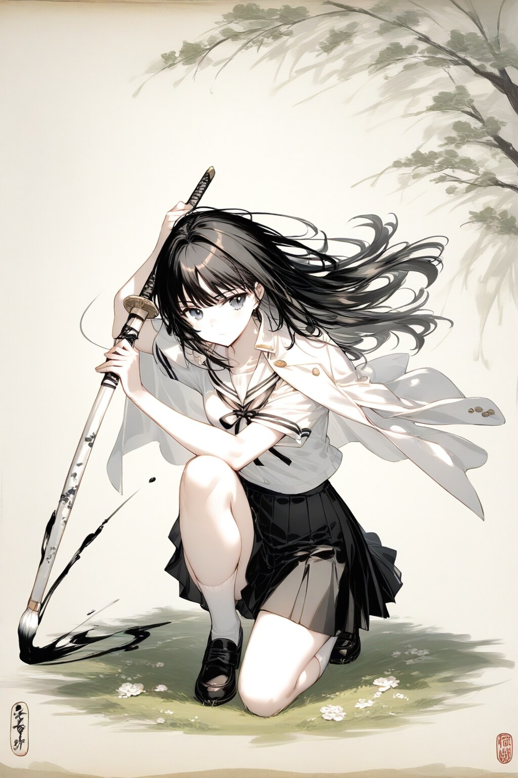 まみむめも様 投稿企画「水墨画」用イラストです。
