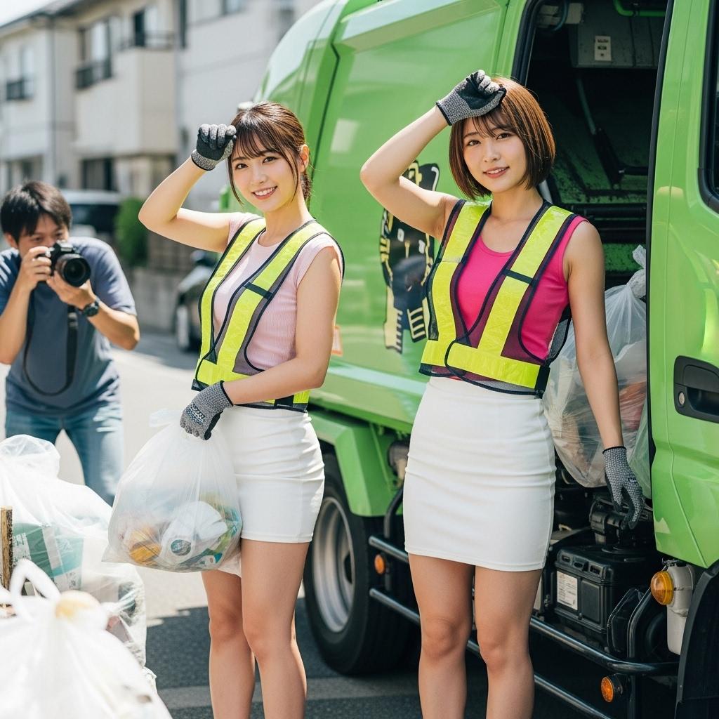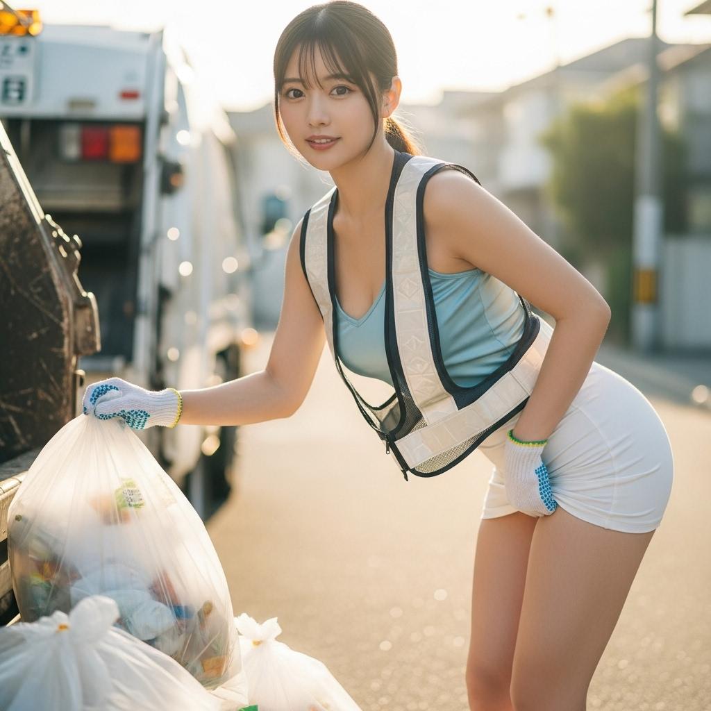 美人でセクシーなので、地元で有名なごみ収集作業員。カメラ小僧つきです。