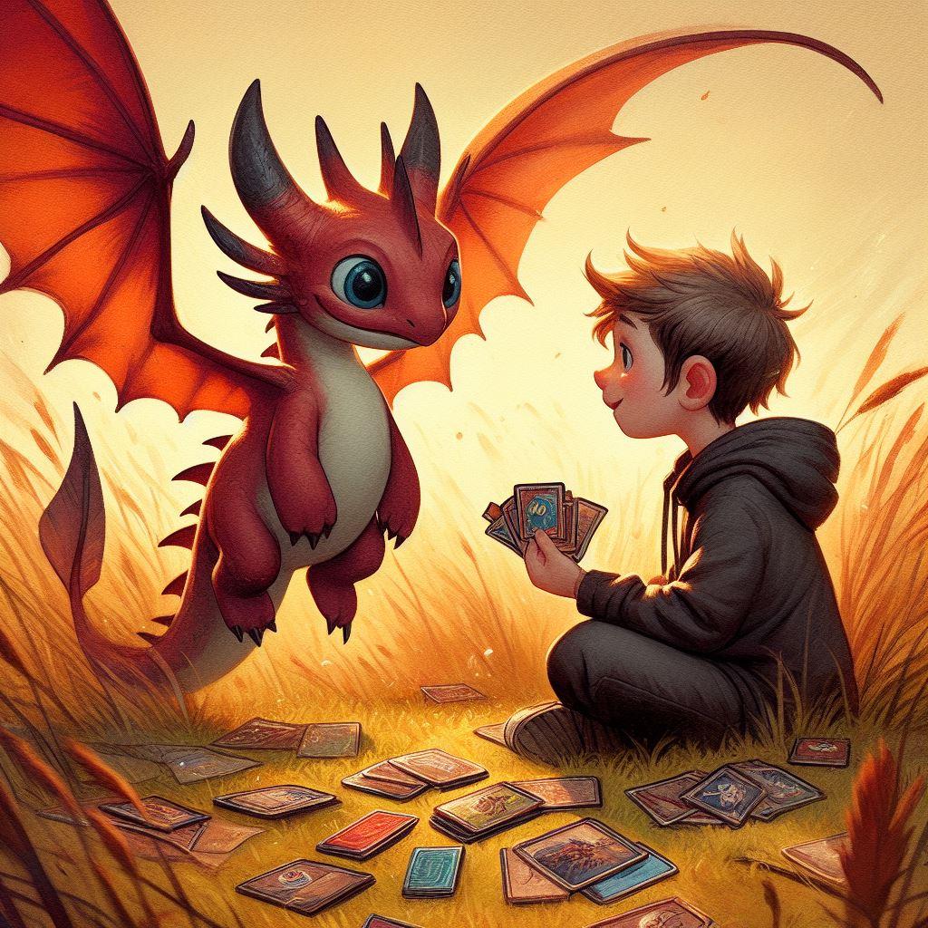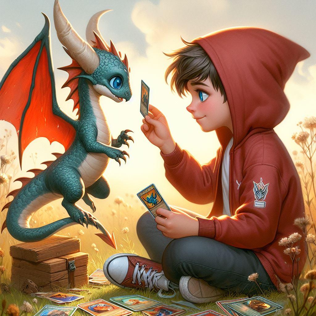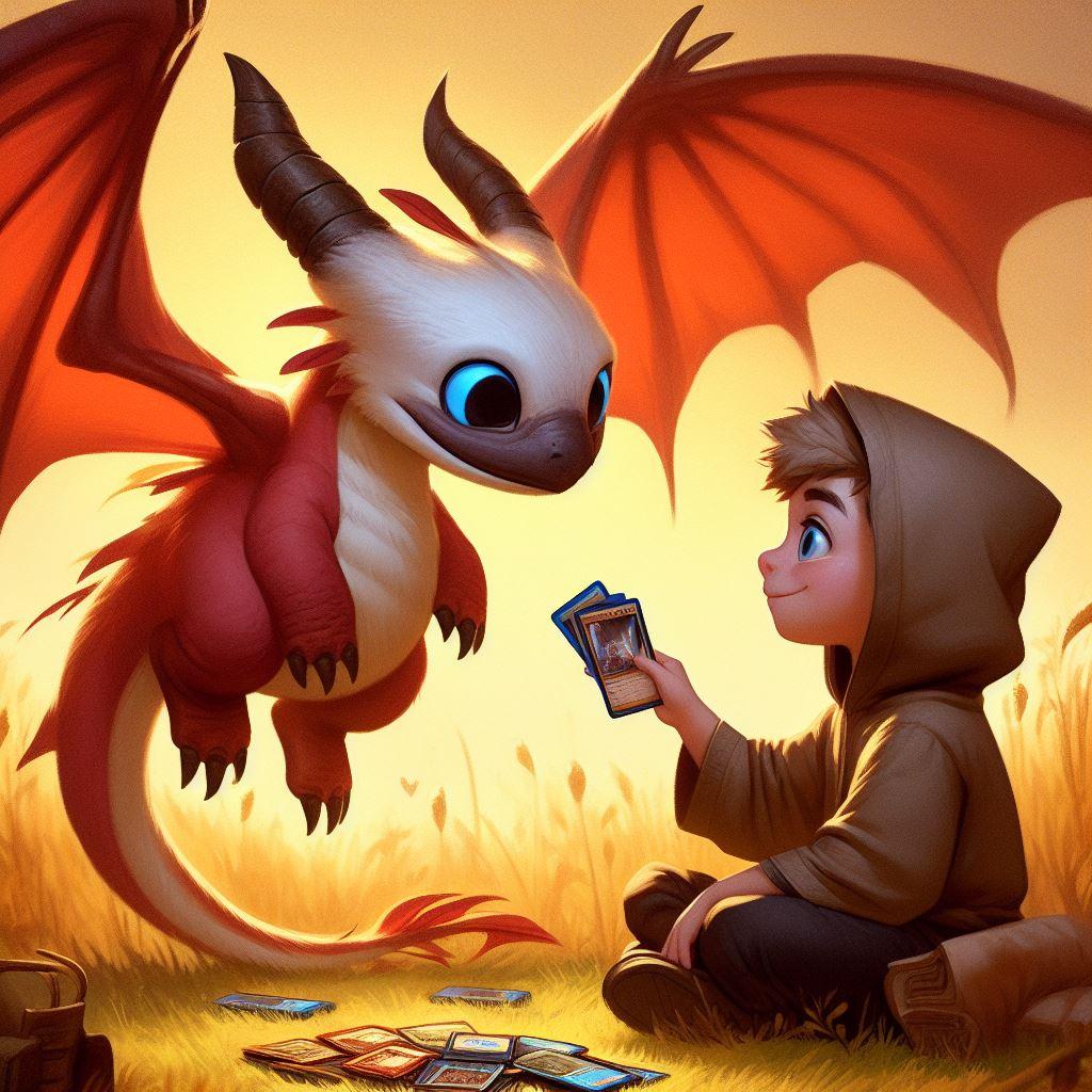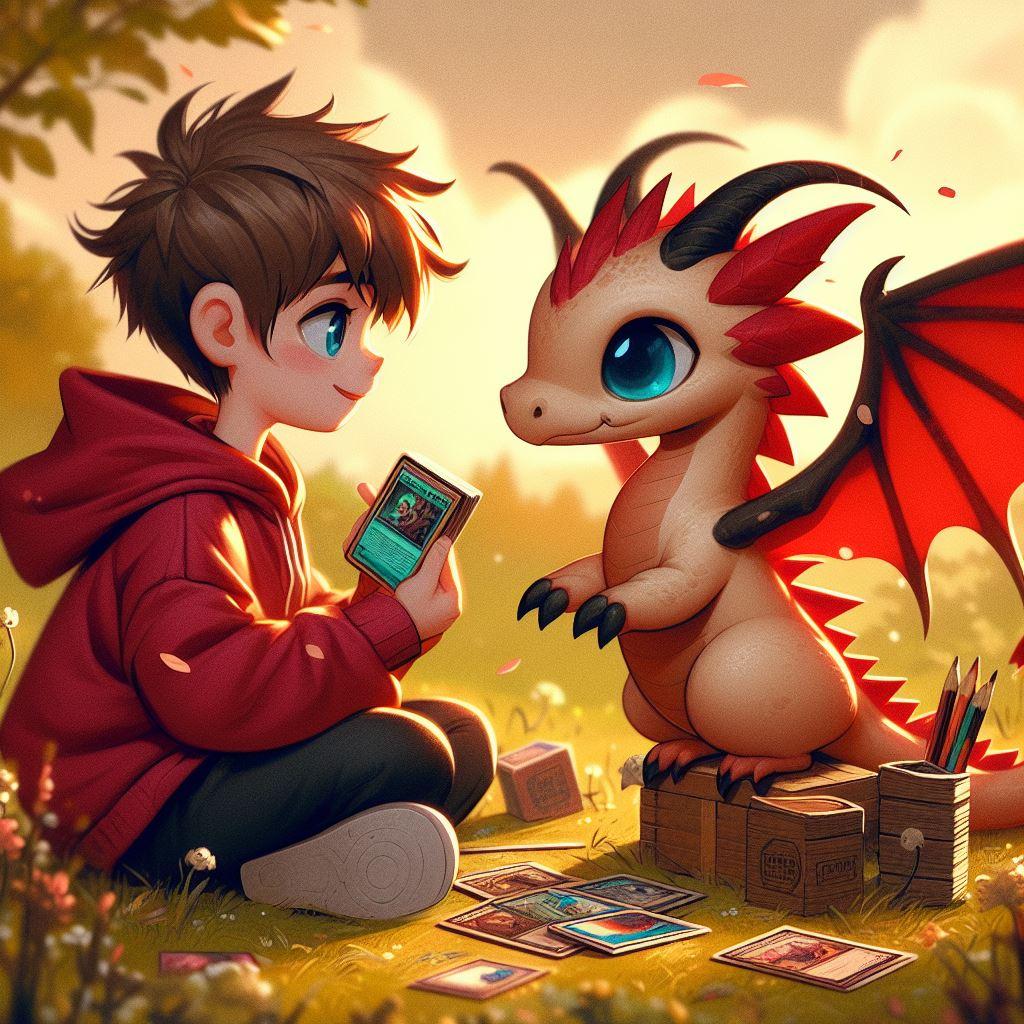 竜とトレカで遊ぶ少年