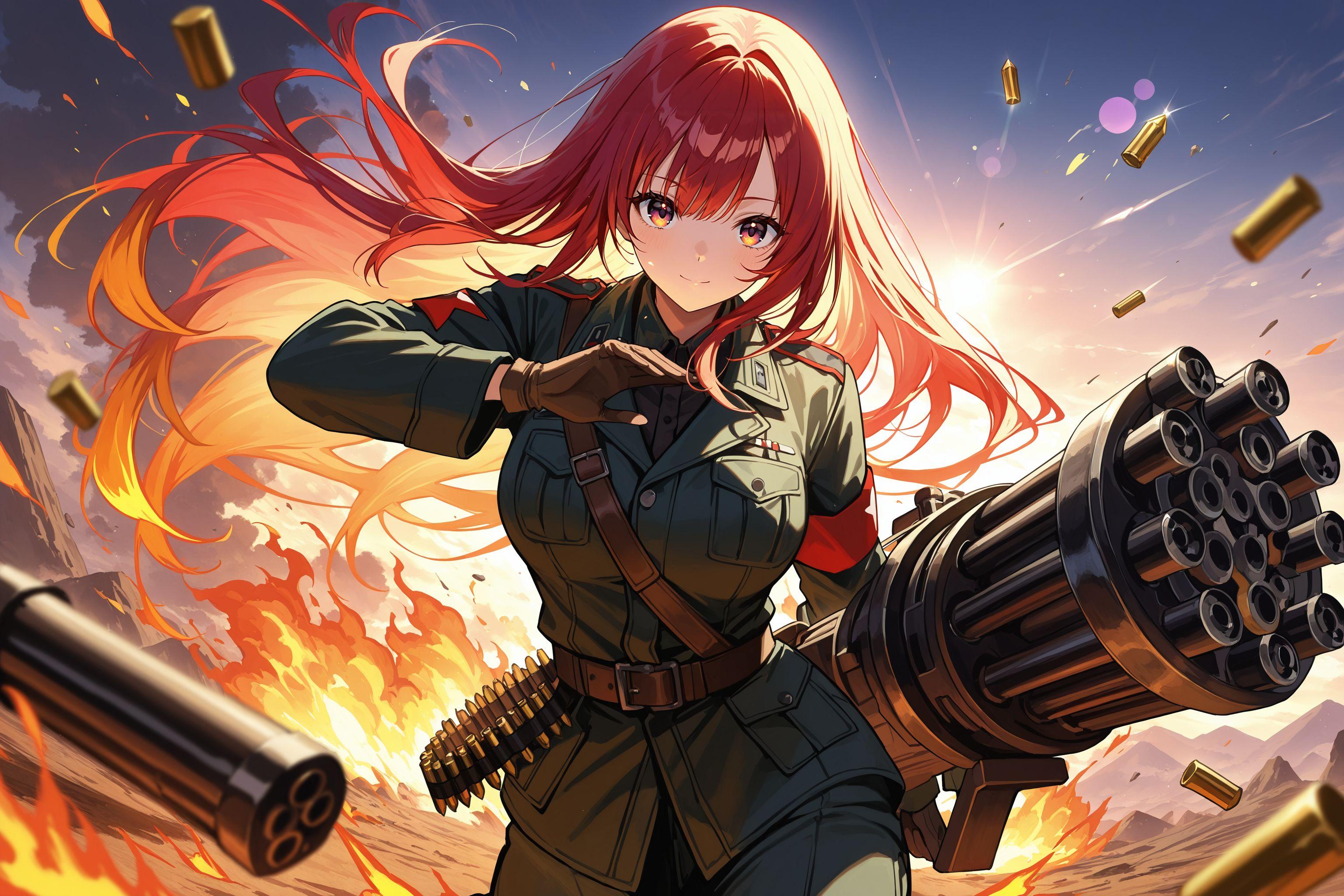 ガトリングで行くぜ!(お題「武装JKvs侍JK」で、武装JKです♪)