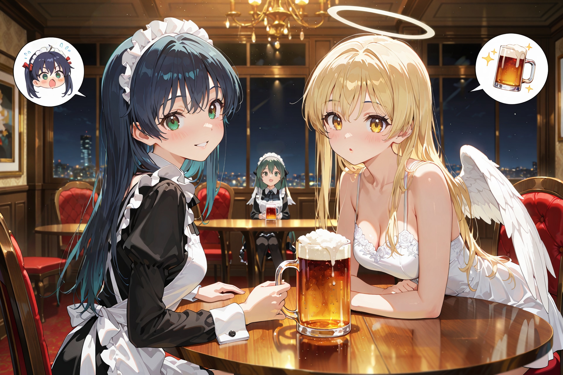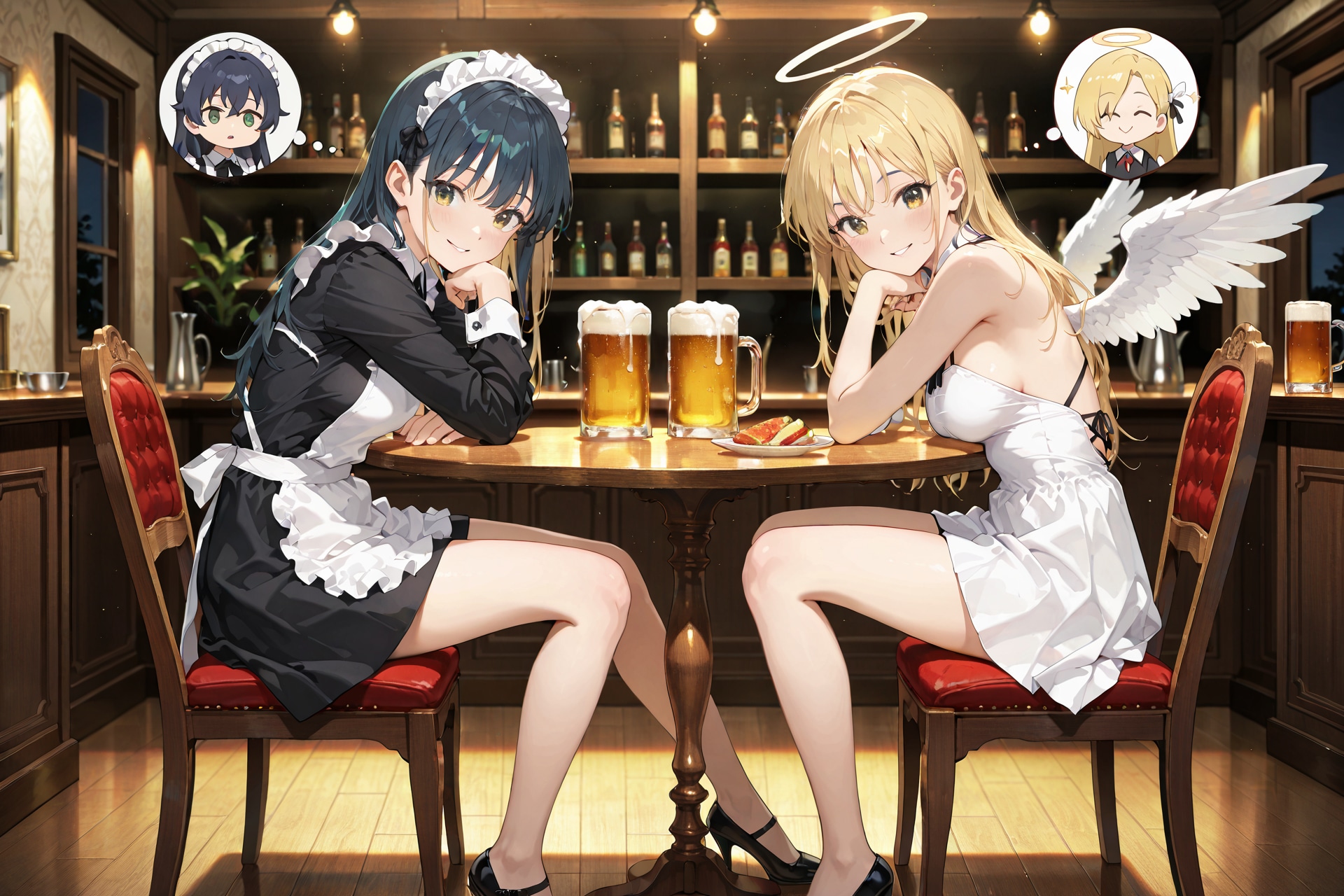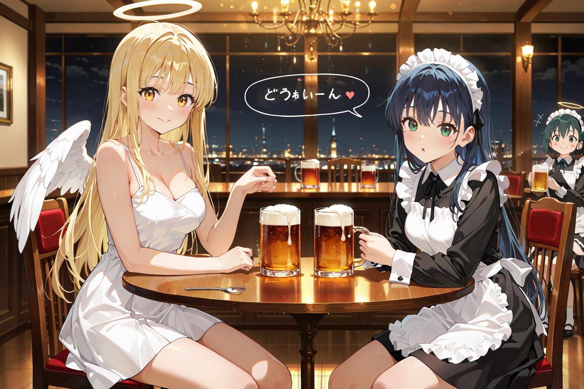 8枚目:なんだかんだで普通に仲良く呑んでいるメイドさんと天使ちゃん。