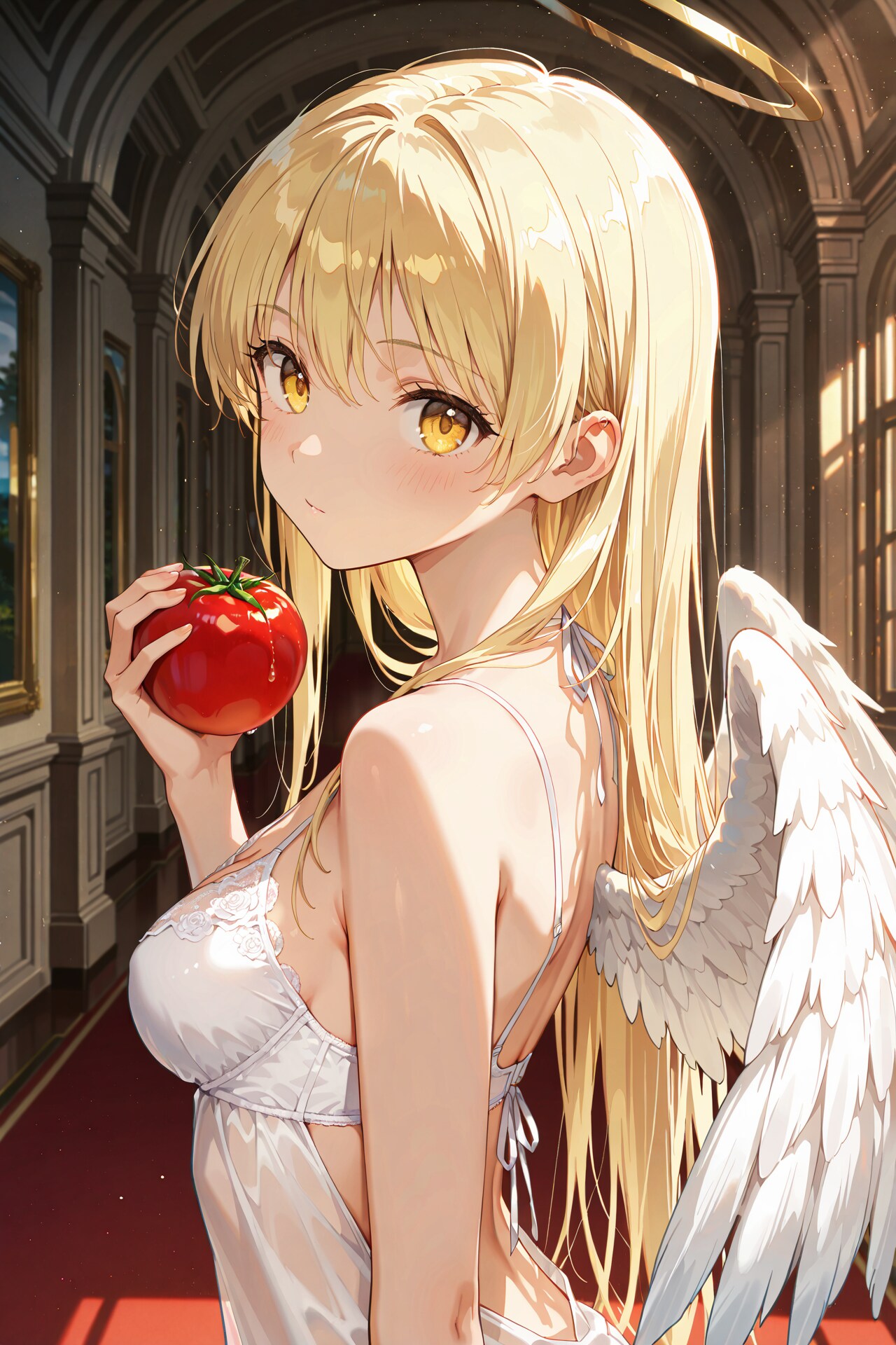 2~3枚目:トマトを手にする天使ちゃん。(トマトジュースじゃないのね)