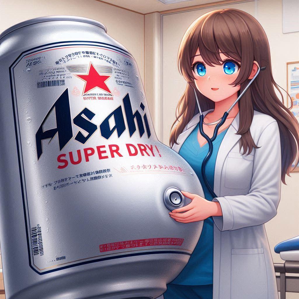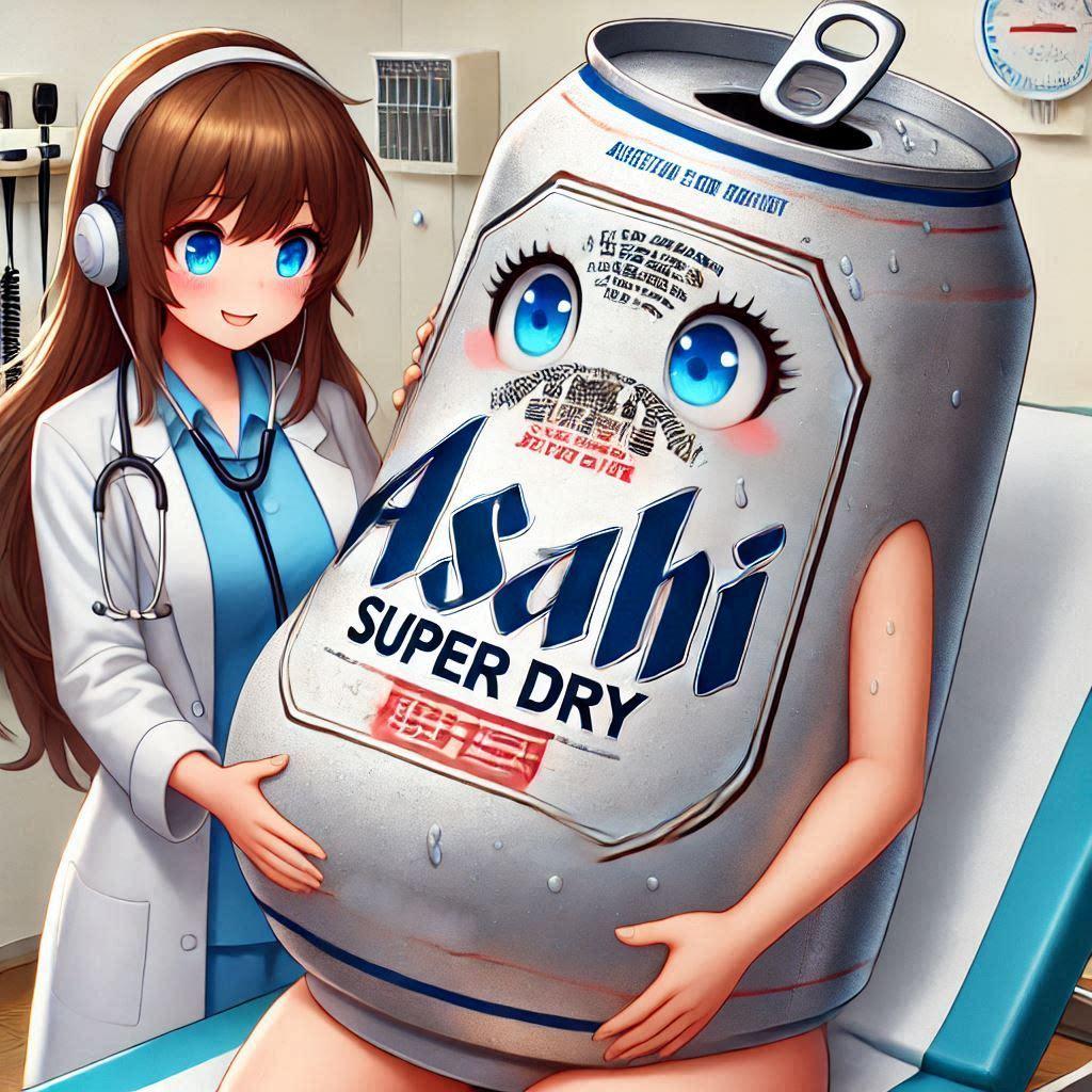 産婦人科の女医と受診してる妊娠中のビール缶