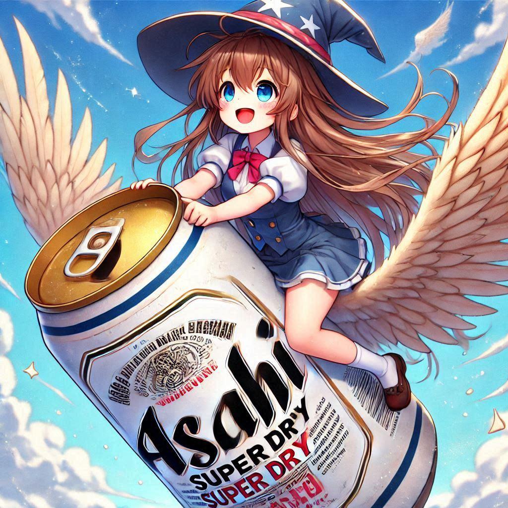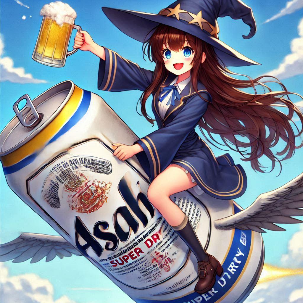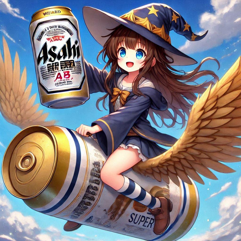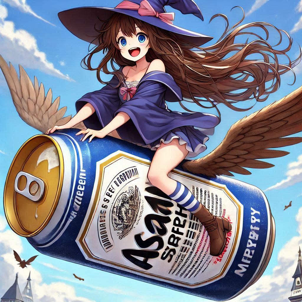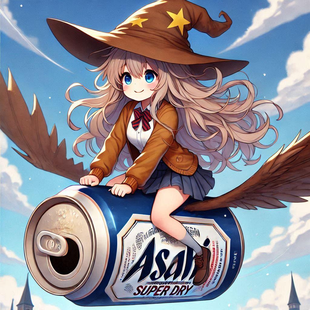 空飛ぶビール缶に乗る魔法使いの小さな女の子