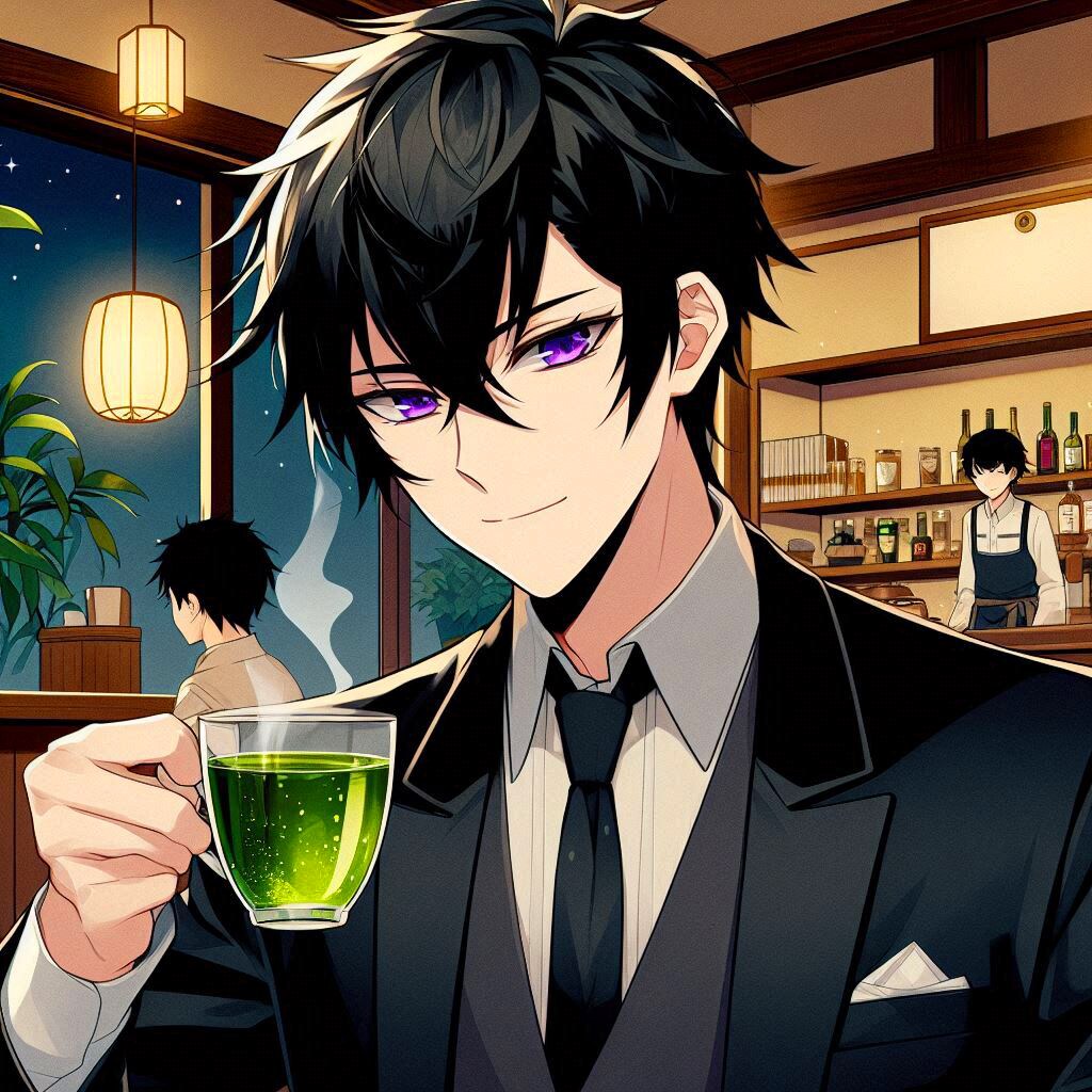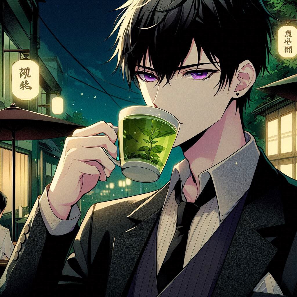 では、お茶を飲んでいる、黒髪短髪男性をご覧ください*