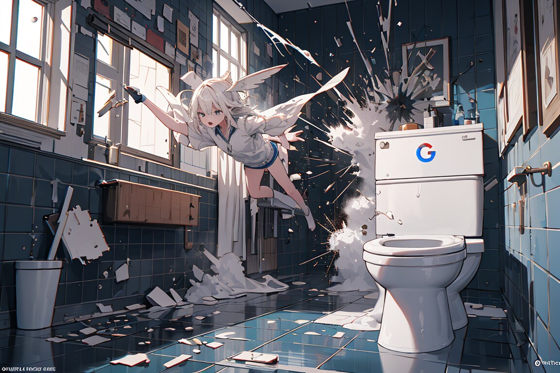 やる気のないおっさん(奥のがきっと便器の化け物)