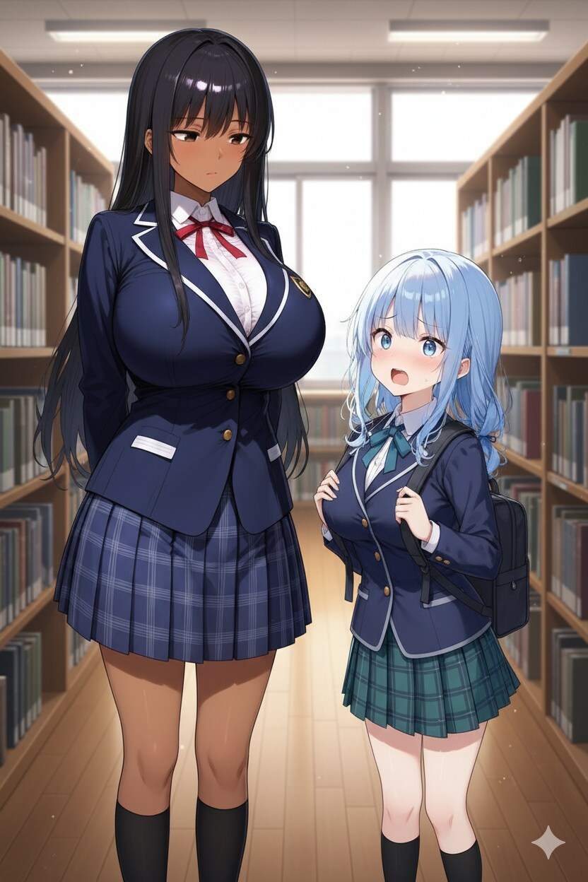 ちなみに二人の身長差は28cmで、相手のデカさに驚いた水色髪ちゃんの身長も160cmある。