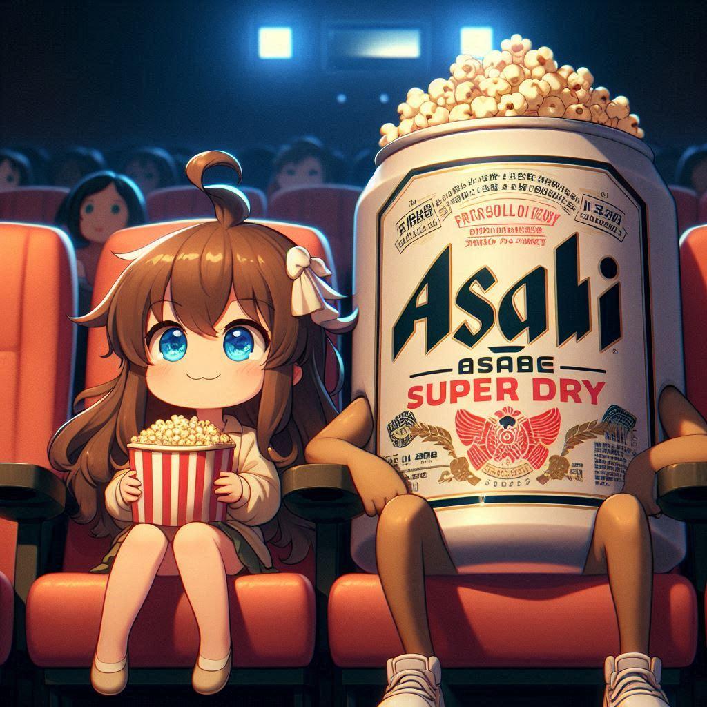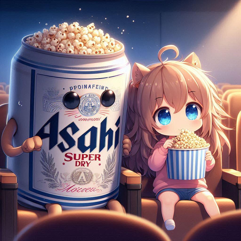ポップコーンとともに映画を観るビール缶と小さな女の子