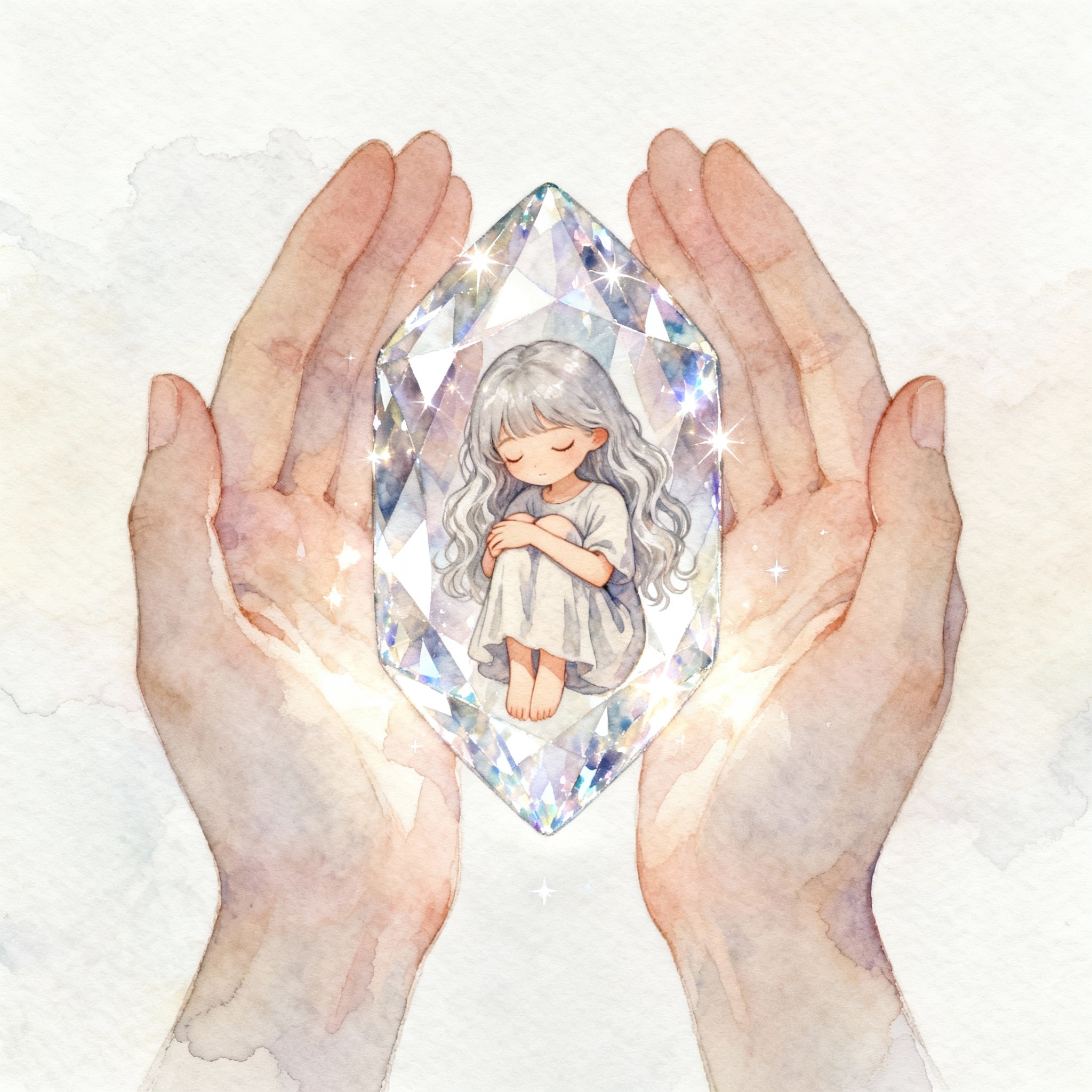 確か攻略本の記述に「膝を抱えて眠る少女が閉じ込められた宝石」とか書いてあった気がするので、それを再現してみました。