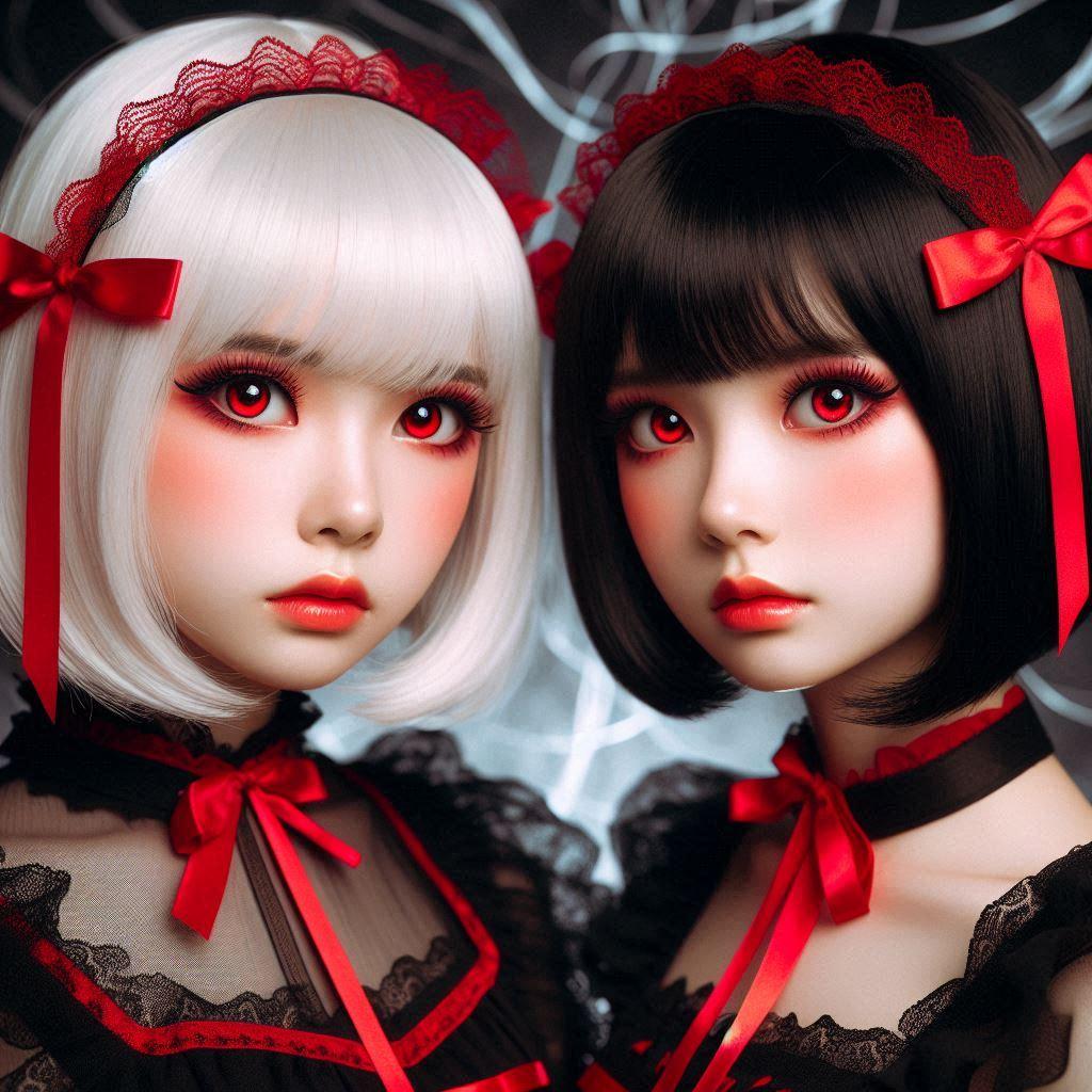 もちさんによると白髪がこよりちゃんで黒髪の娘がしぐれちゃんらしいです。