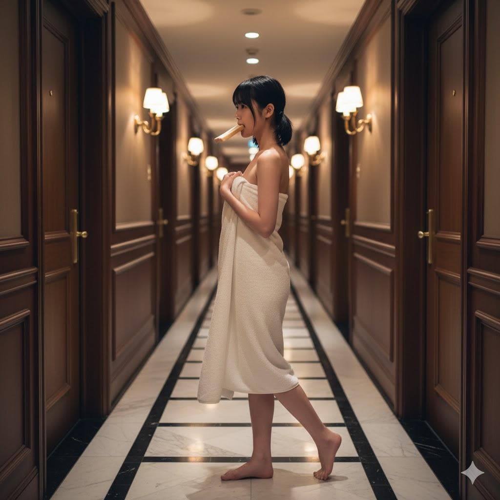「はい、お客様のお名前でお部屋を確認することができます、が、お客様、大浴場へはお着替えは持っていかれなかったのでしょうか?」