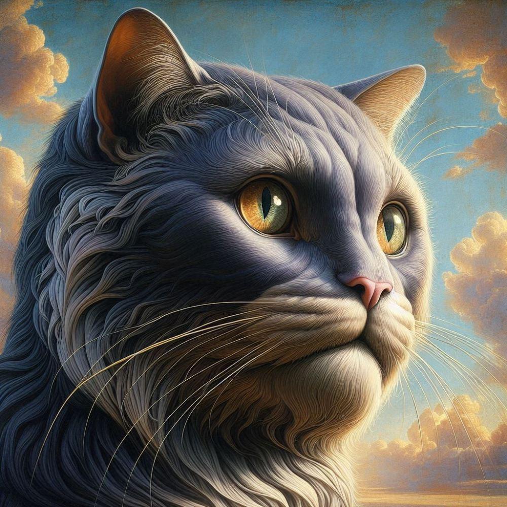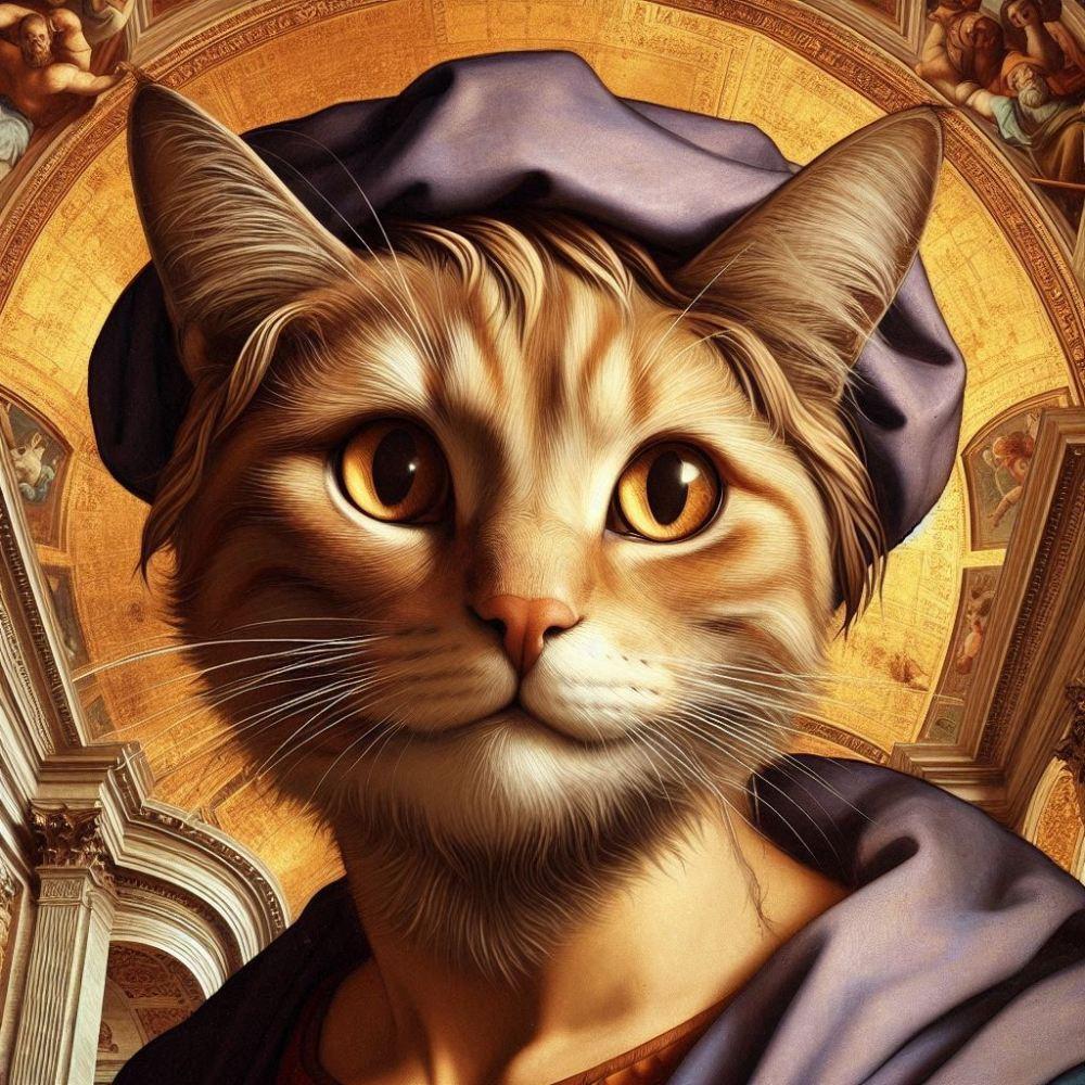 フレスコアニメ風、獣耳猫耳娘の微笑み