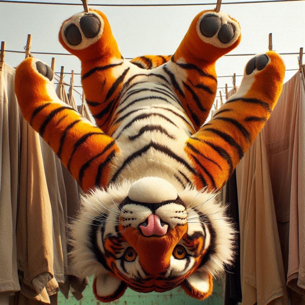逆さ吊り、逆さ吊り、逆さ吊り……と考えていたら、うちのトラくんが目についたのでお願いしました(^^;