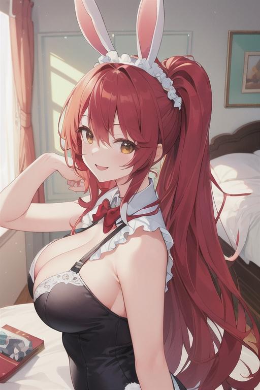 私の心が求めた結果、バニーガールとカトレアリアさんが出てきました。彼女はR15にてモブタを魅了し、苛ませるキャラです。でも、興味はない(抗う)VSおとしたい(魅了する)の攻防が続いています。私は揺らぎません絶対に!揺らがないぞぉぉー!