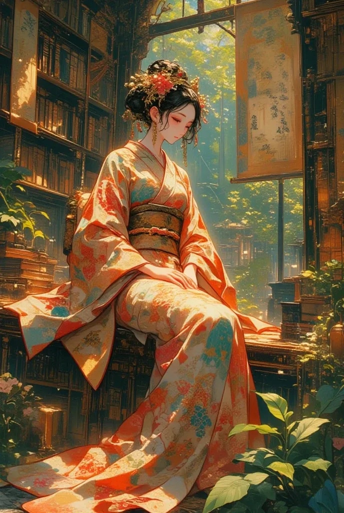 Xで見かけた本に囲まれた女性を再現しようと作ってみました。元のXのポストは見失ってしまったので紹介できず…。
