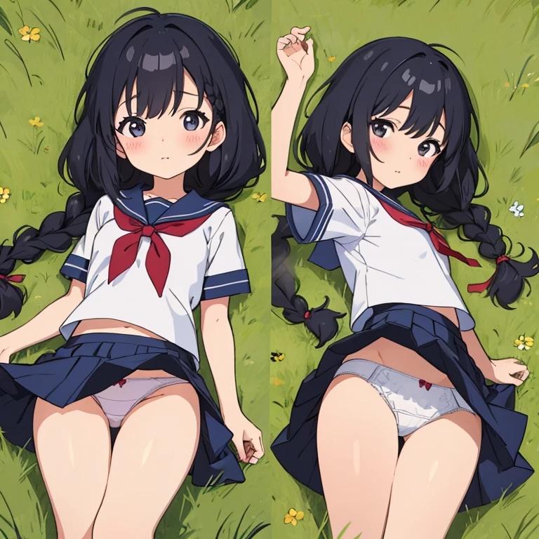 三つ編みJ〇ちゃんのセーラー服パンツ見せ(白)
