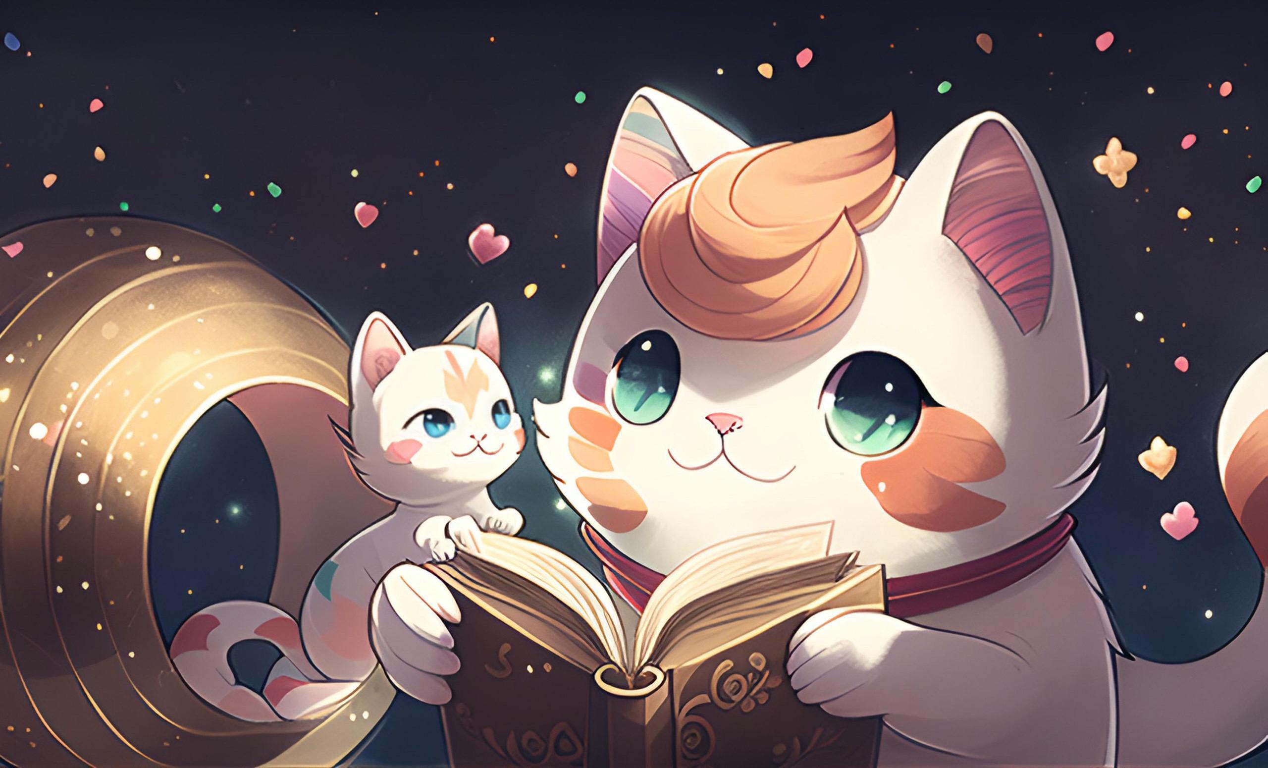 AI絵本「にゃんにゃんスター」の表紙イラストに採用しているにゃん。