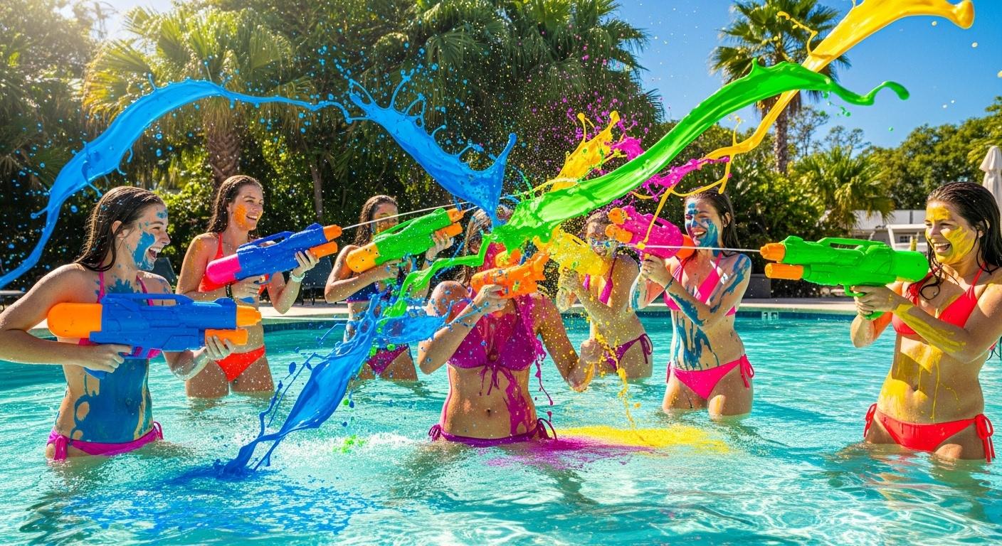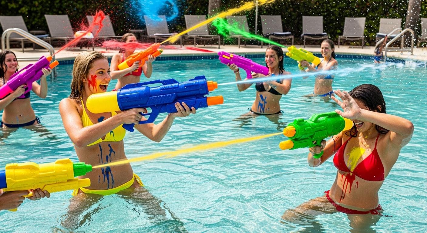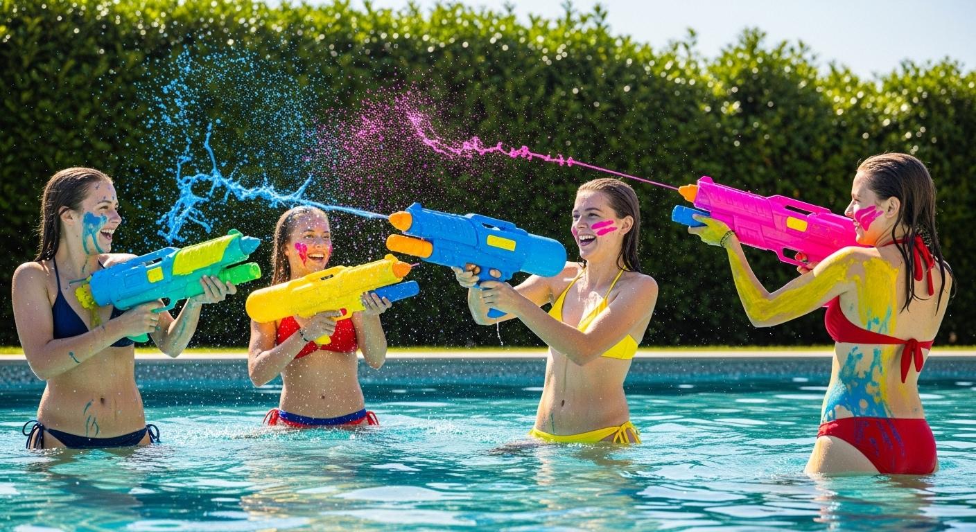 ウォーターガンから発射されているのはペンキじゃないの?