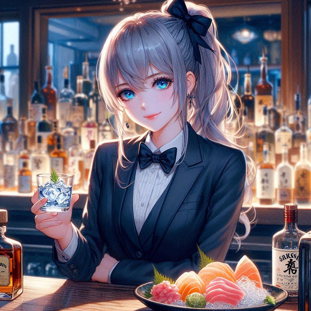 凪咲さんが日本酒ロックとお刺身を楽しんでいる様子も作りたかったのですが、どうにもうまくいかず断念・・・会話のみでの登場となりました。