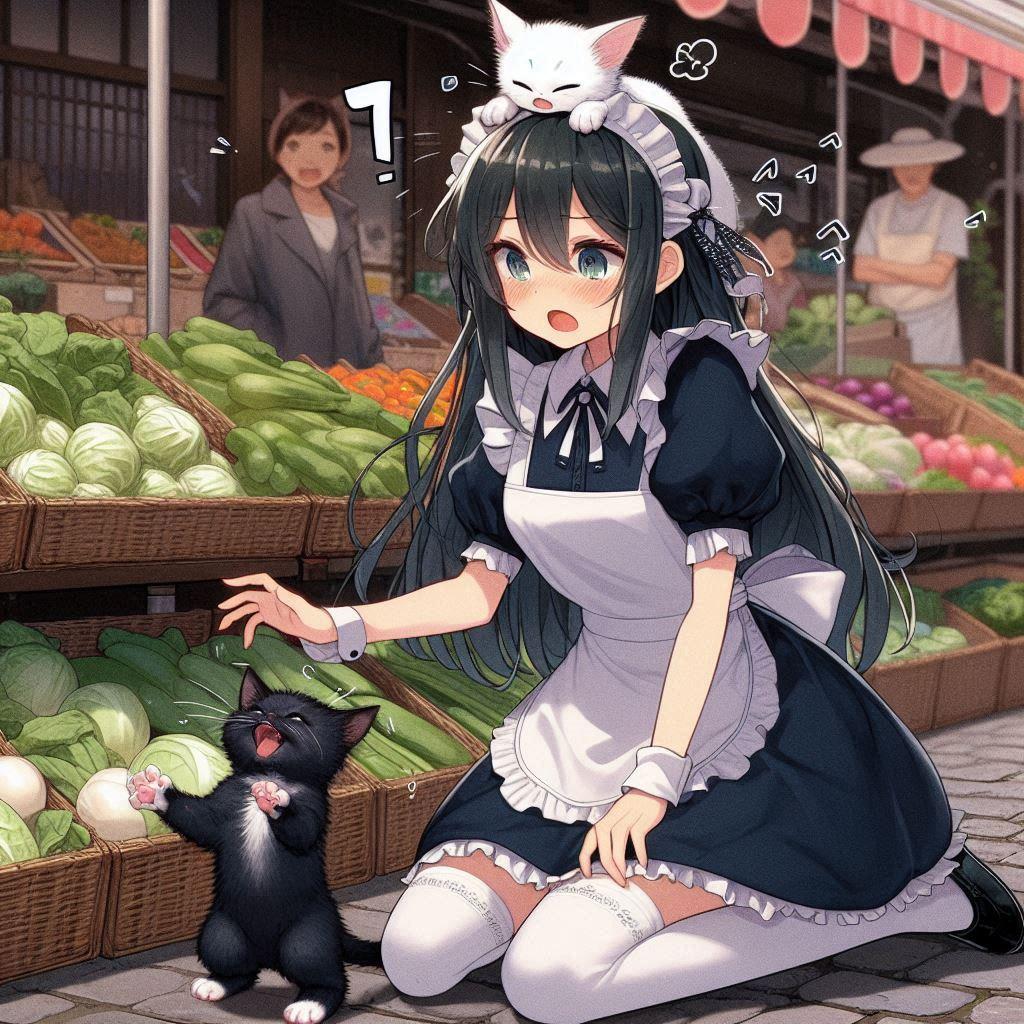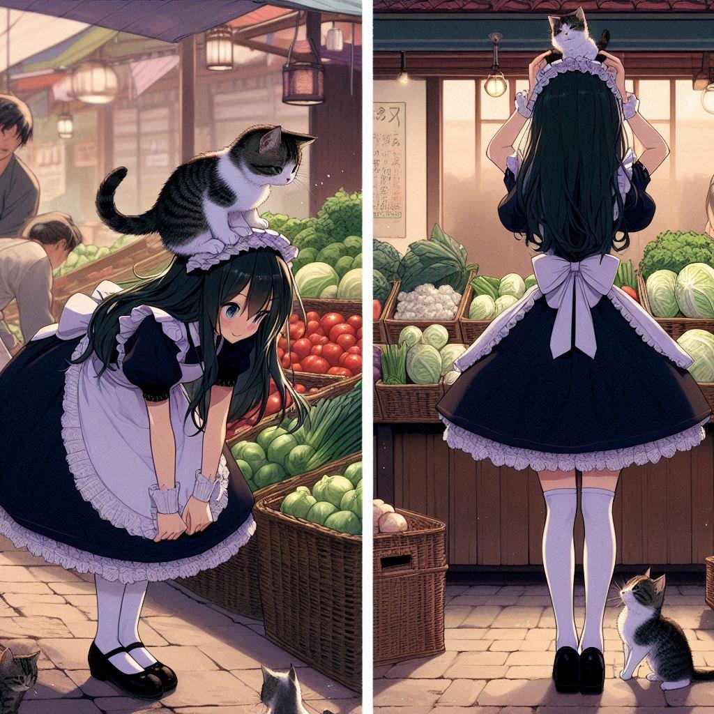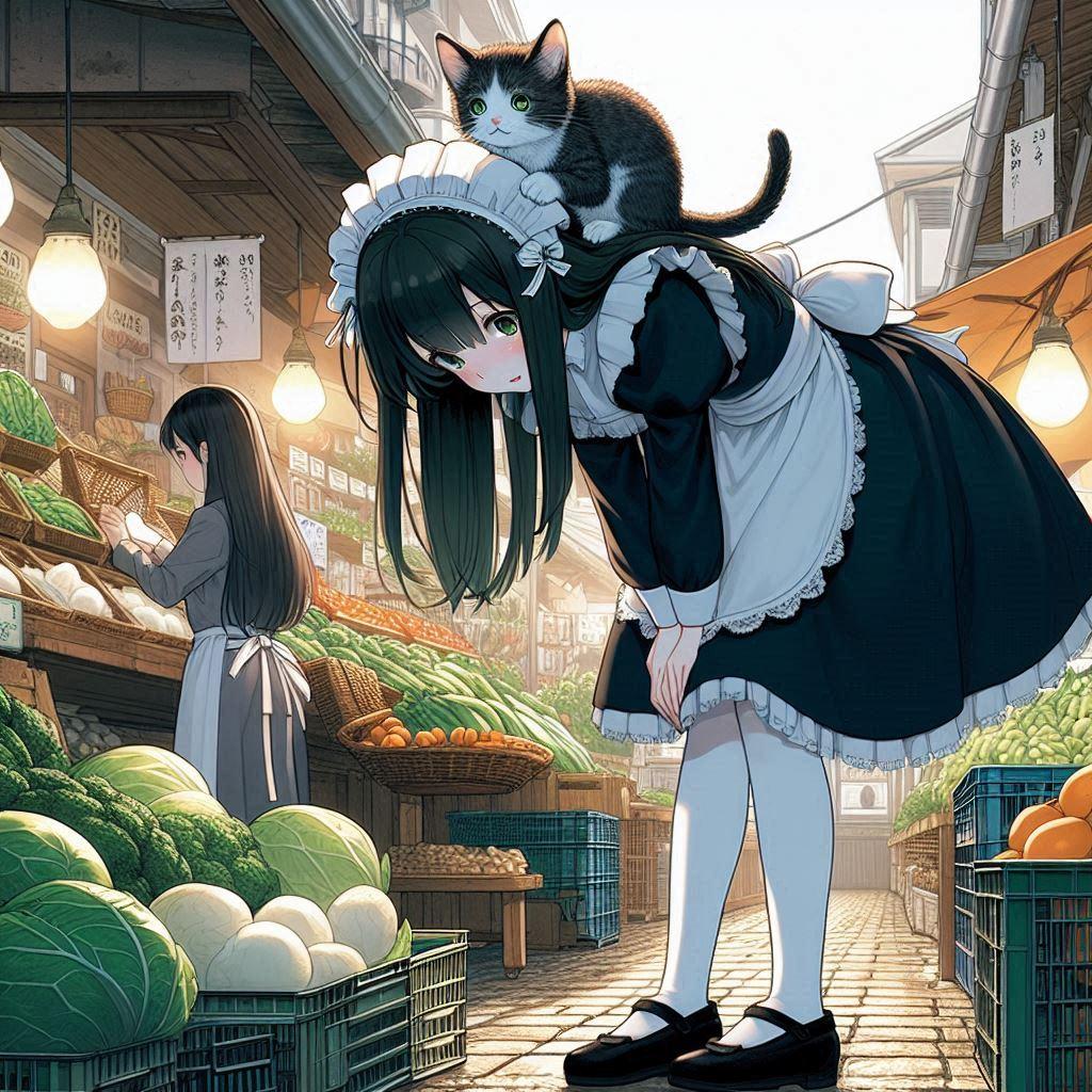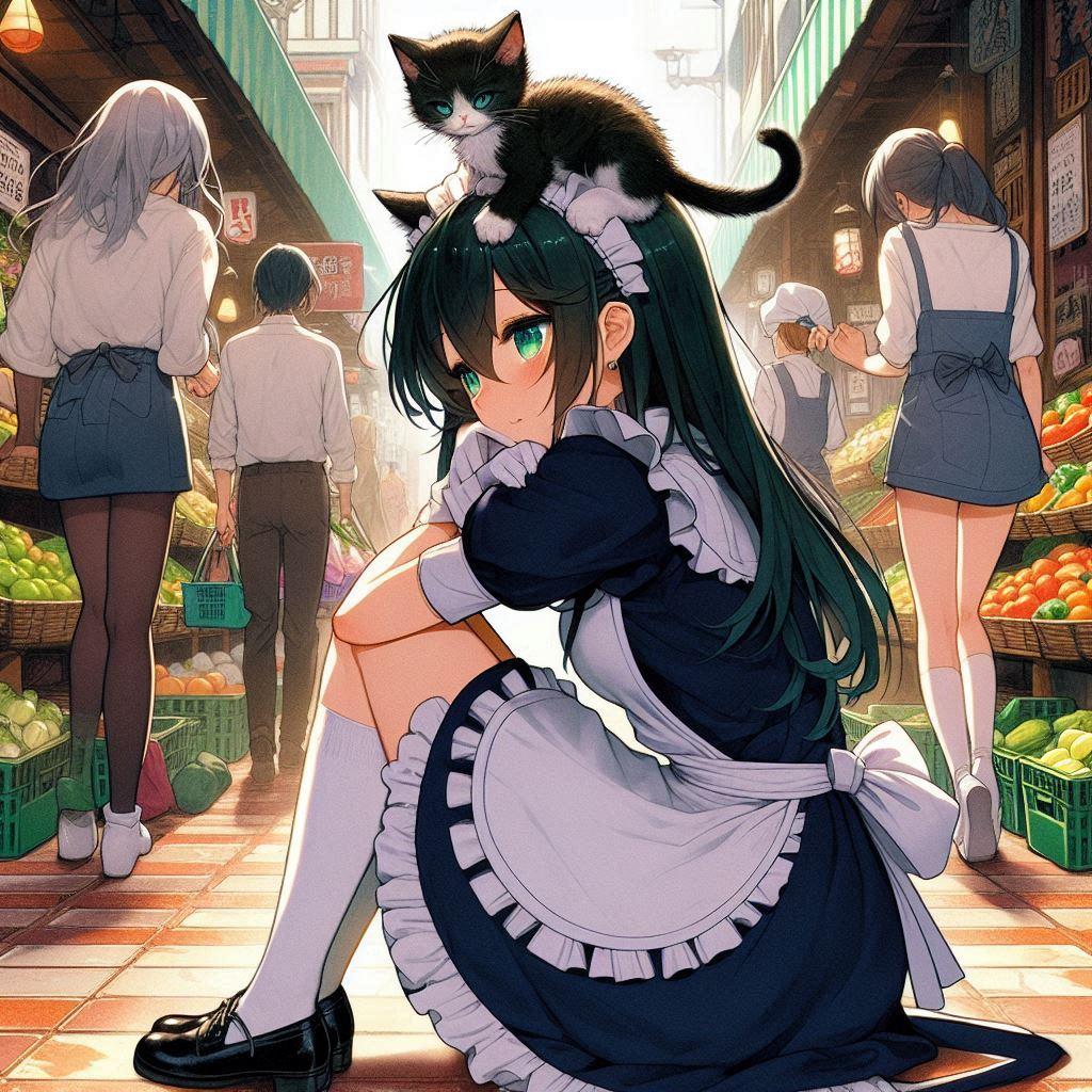 「黒髪」より「濃い緑色の髪」の方が黒い髪らしい生成ができることを学びました(・∀・)