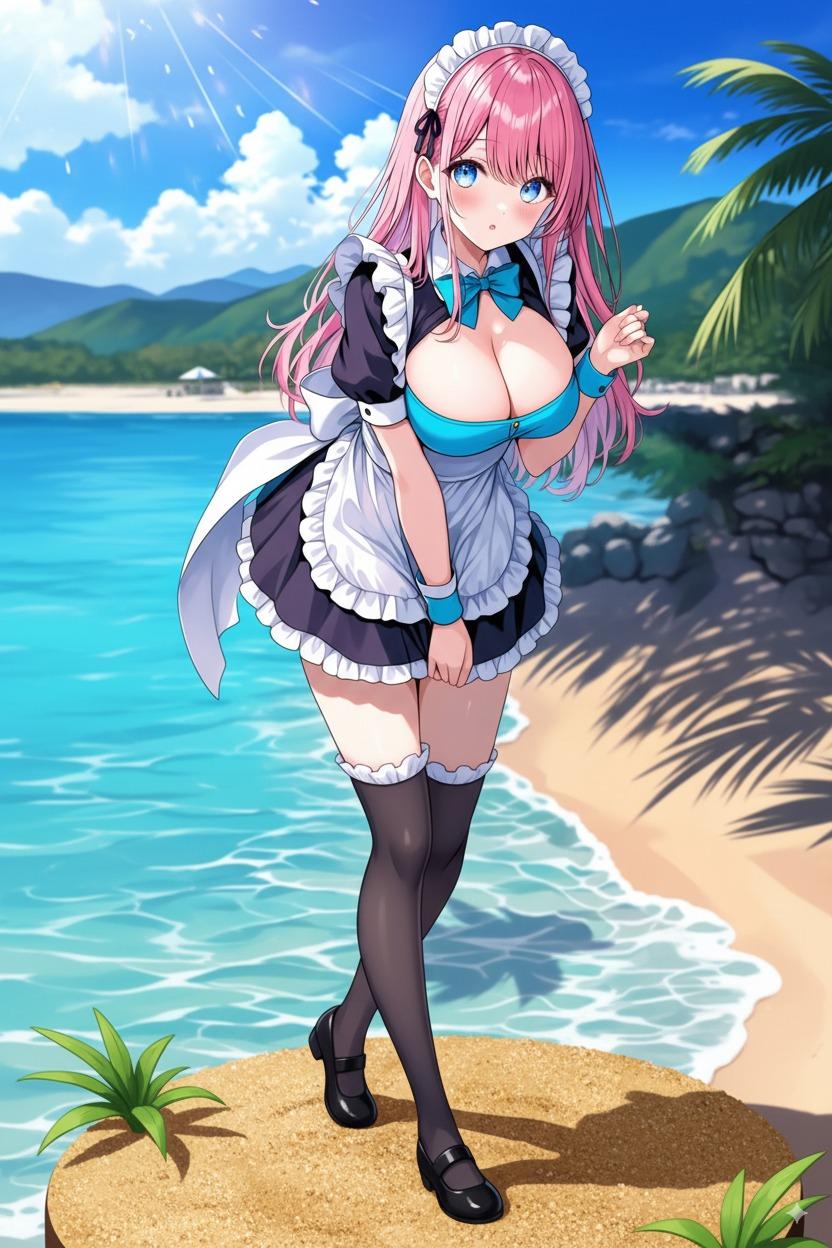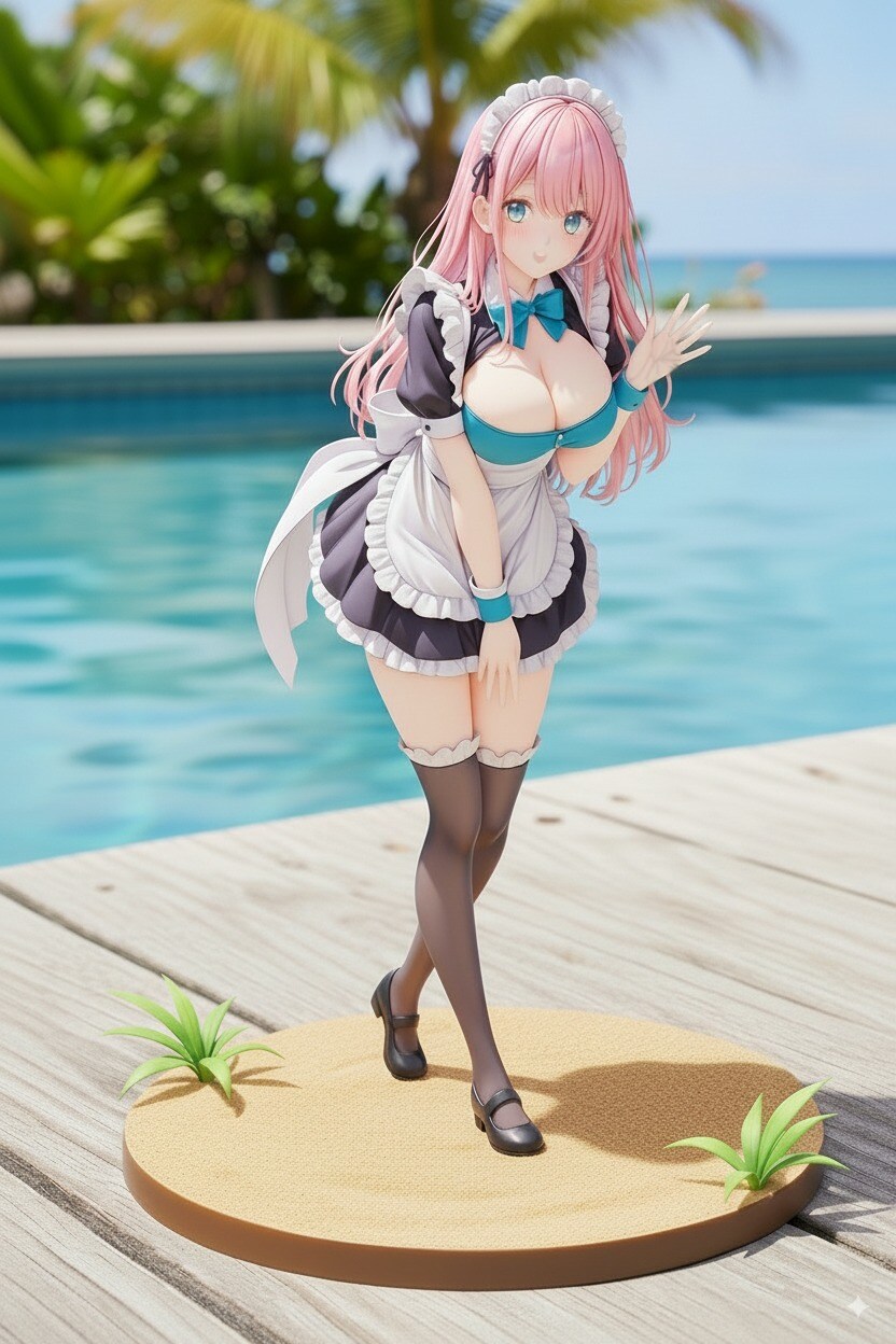 『ビーチに連れてこられたピンク髪メイド』のフィギュア