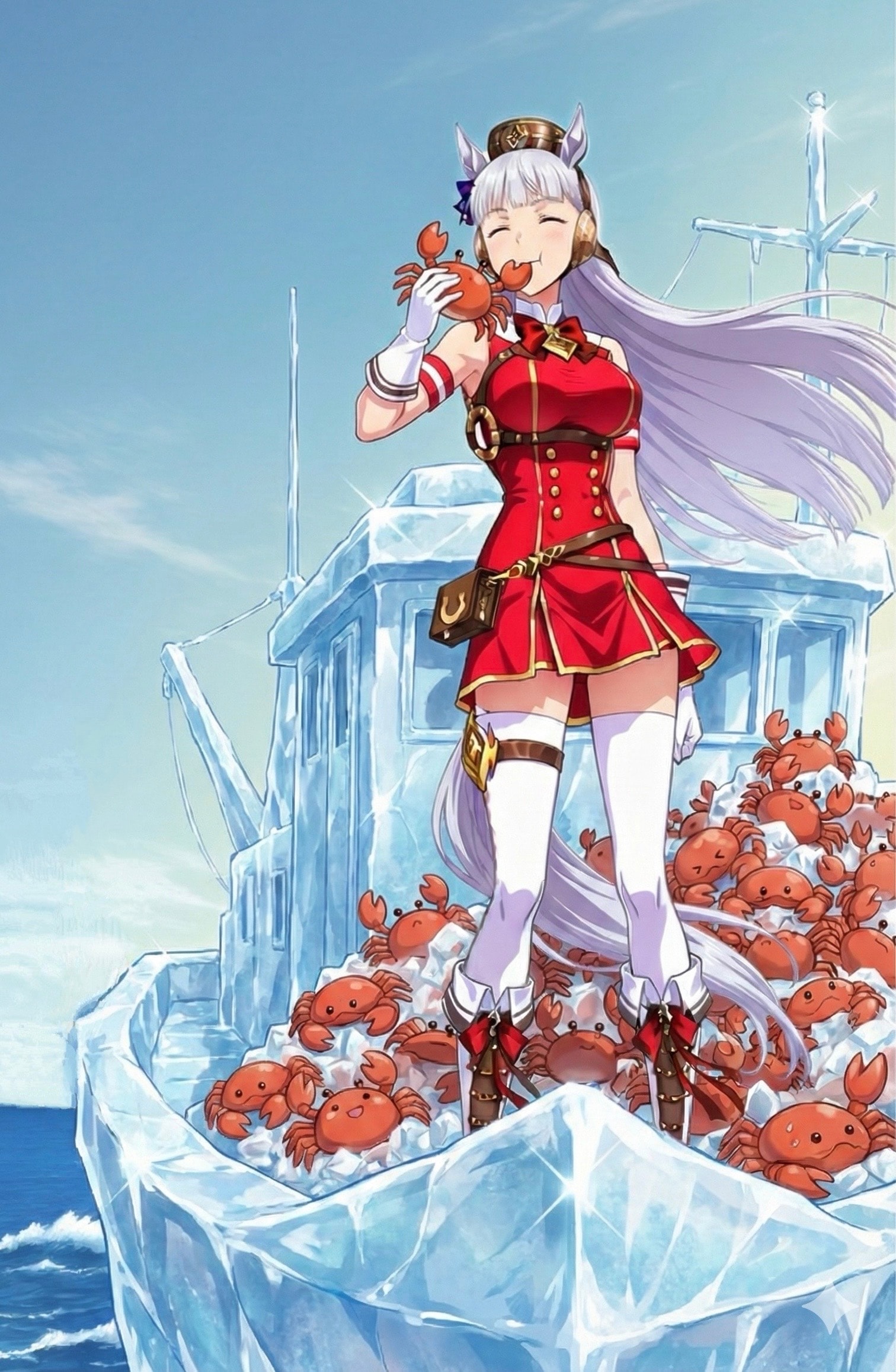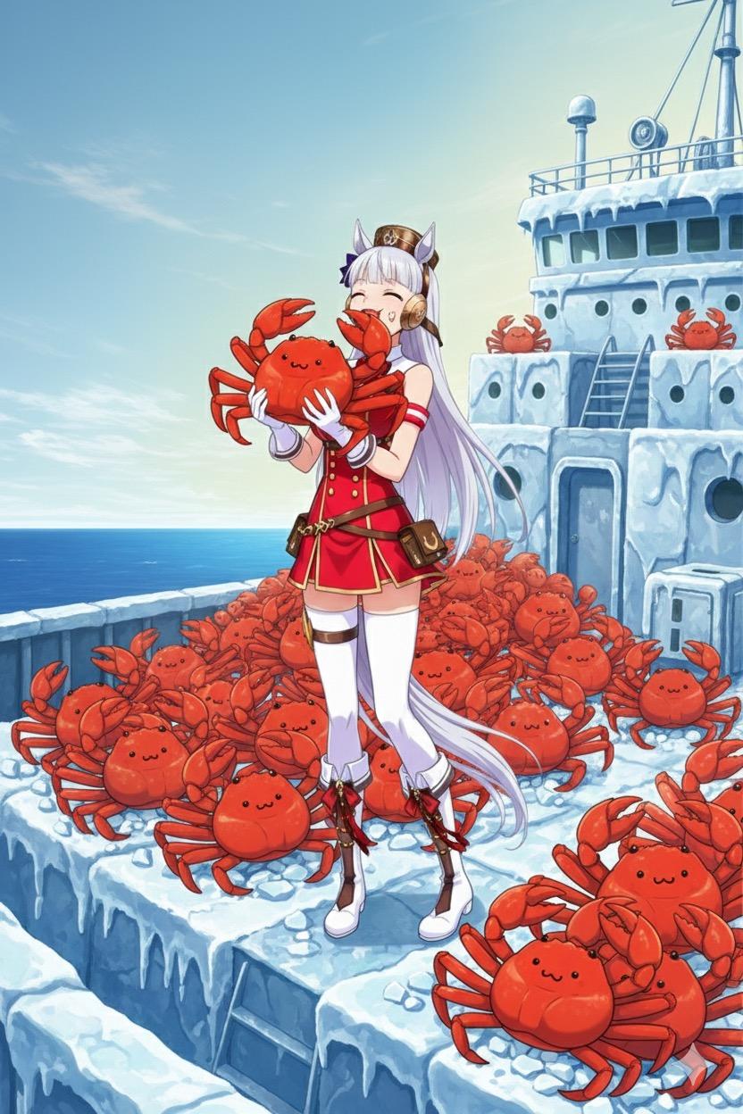 「学園に着くまでに船が溶けちまったら、ゴルシちゃんが美味しく戴いたコイツらの甲羅で新しい船を作って帰るぜ!