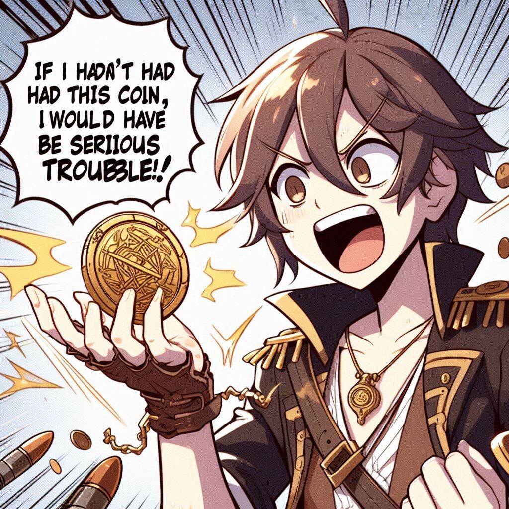 「このコインが無ければ即死だった。」みたいな場面が作れなかった…のは雑指定なので仕方無いとして、どうしてこういう感じになったのかがとても謎ですね。