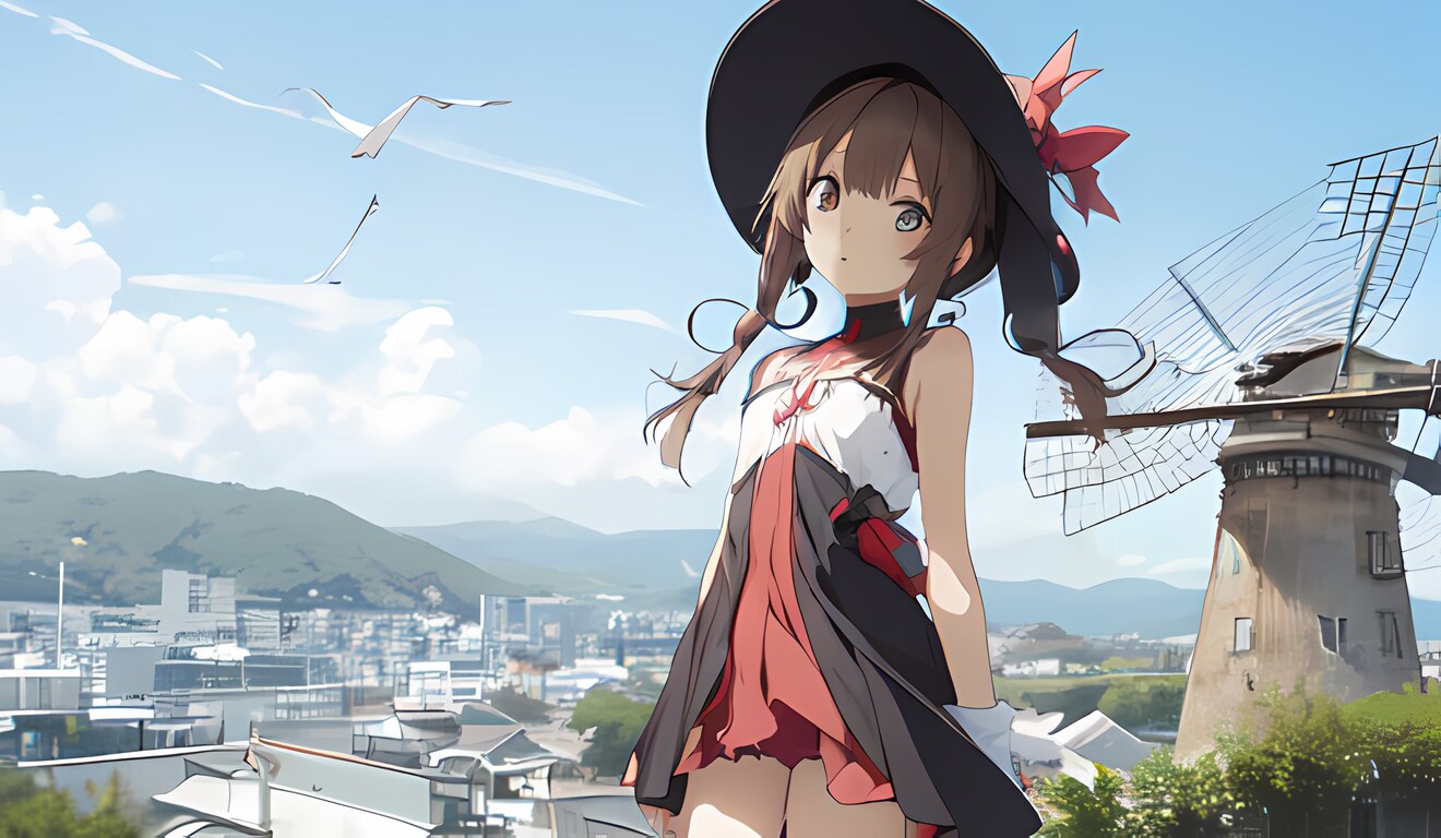 風車と少女