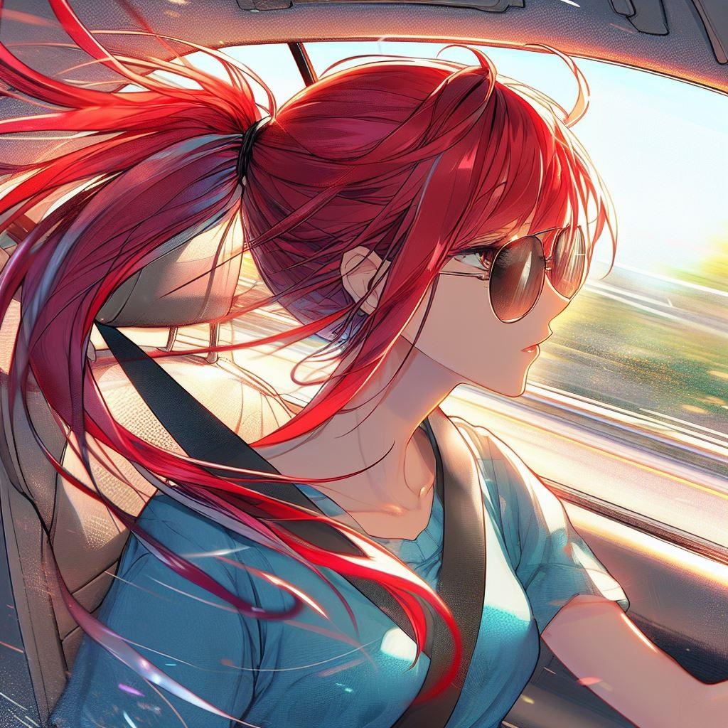 後半の四枚の女性は、赤髪・ポニーテール姿・サングラスについて特に注意して何回か調整して