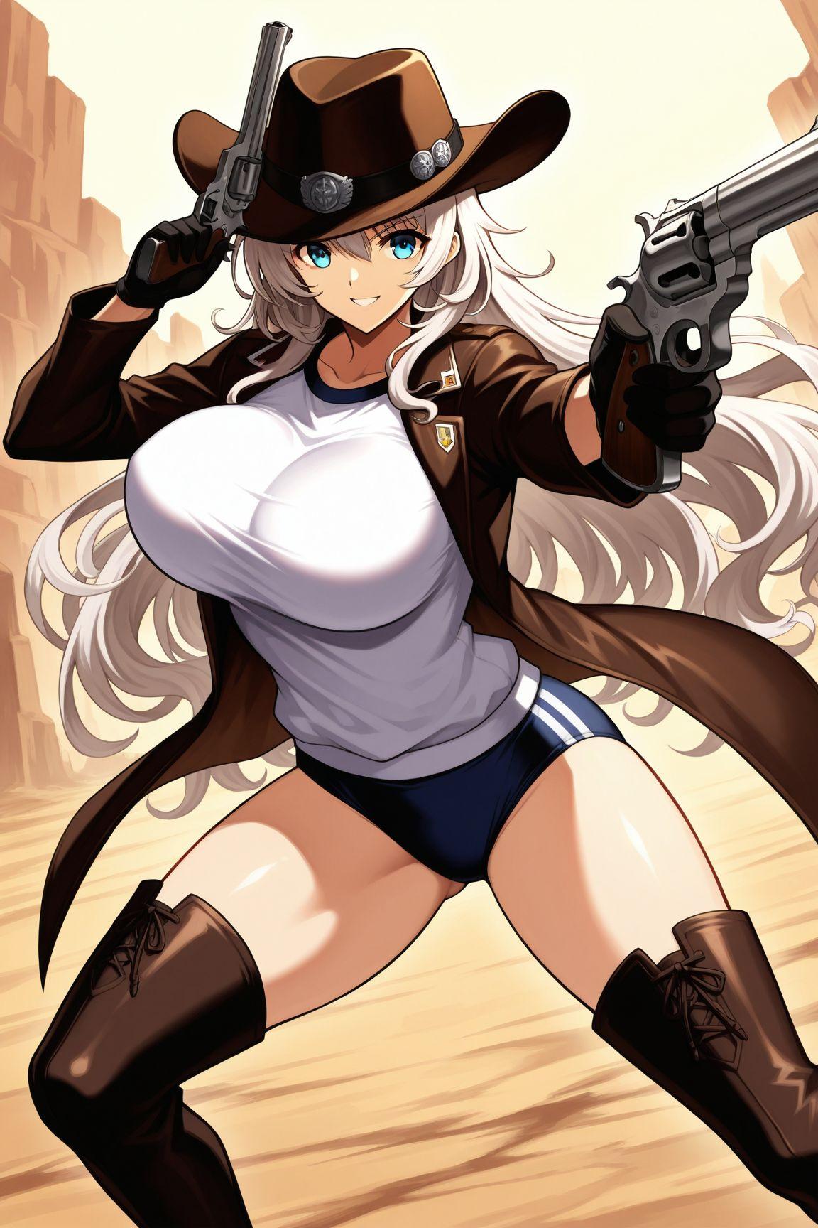 美女と拳銃、そしてブルマという謎の組み合わせw