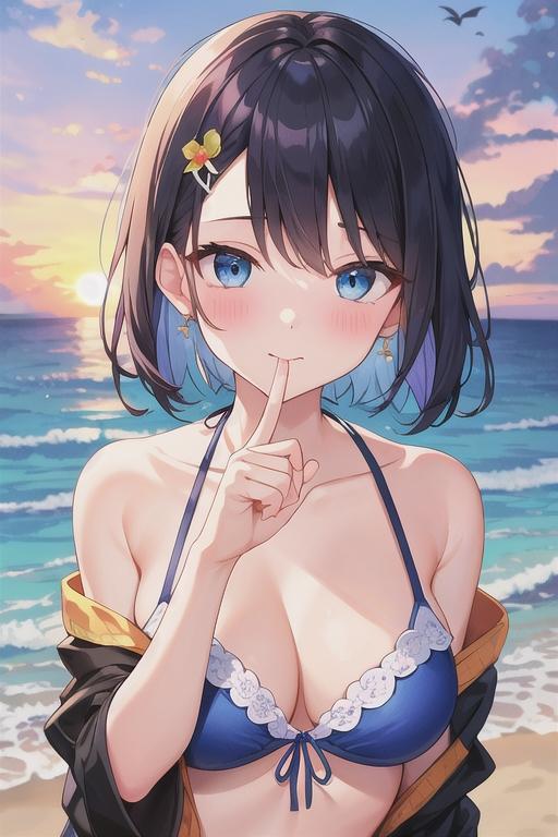 青い目の幼馴染本人。黒髪のショート~ミドルボブヘアでヘアピンをしている。(髪の分け方やヘアピンの付ける位置は気分によって変えている。)